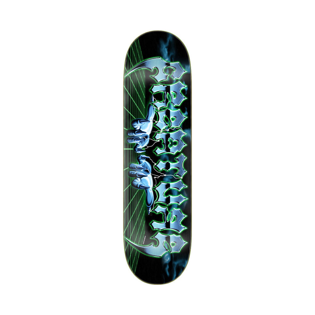 Creature Skateboards Claws Everslick deck featuring vivid multi-color artwork by Samborghini. Everslicks are the fastest sliding slick boards out and 5 times stronger than a standard 7 ply deck. The unique graphic application process yields bright colors and high contrast graphics that look great longer. Measures 8.43" x 31.62" with a 14" wheelbase.