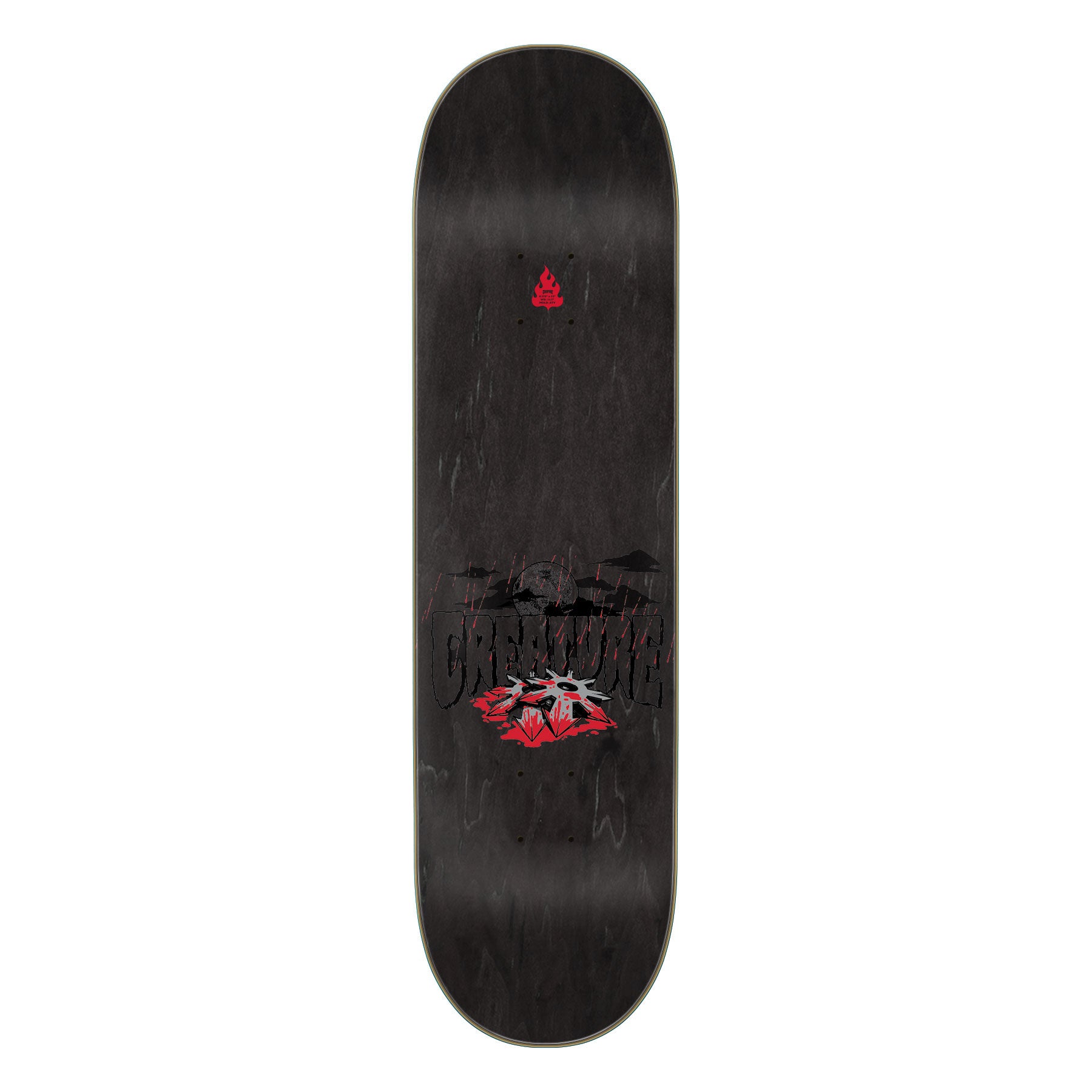 This deck can't get any more deadly, with blood dripping off the foil underpass of this brutal graphic by Dustin Kefaliotis. Nothing is safe in Jhanka's path - Carnage Awaits! 7 ply North American Maple pressed individually using epoxy - making a strong, responsive deck with long lasting pop and consistent concave and kick. ATV is a universal medium-depth concave with symmetrical nose and tail kick that performs well in all terrains on a wide variety of shapes - for anybody, anywhere. Measures 8.375" x 32" with a 14.5" wheelbase.