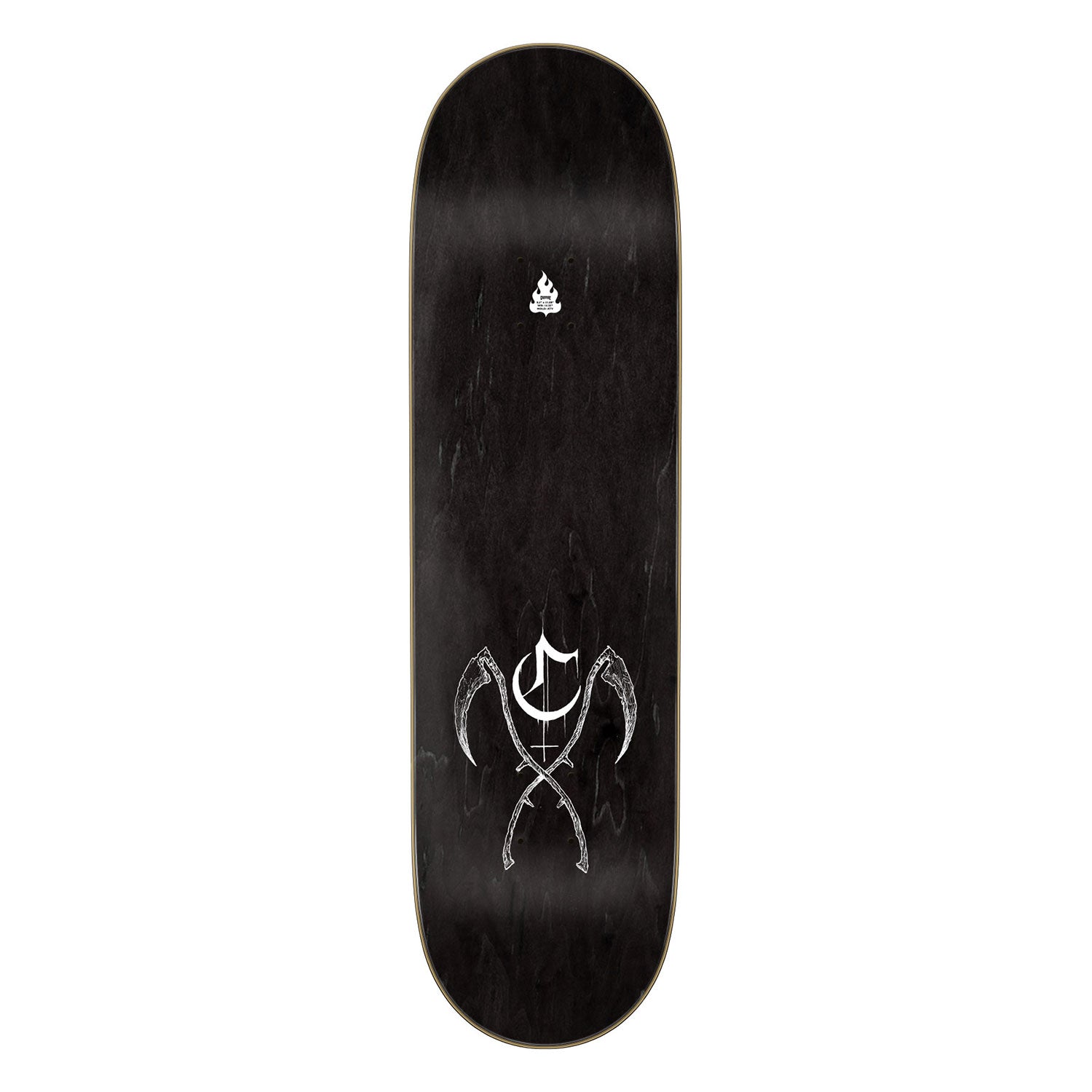 This Martinez Inferno Offering deck has a matte monochromatic artwork, with metallic silver accents on our highly addictive short-wheelbase Stumps shapes.