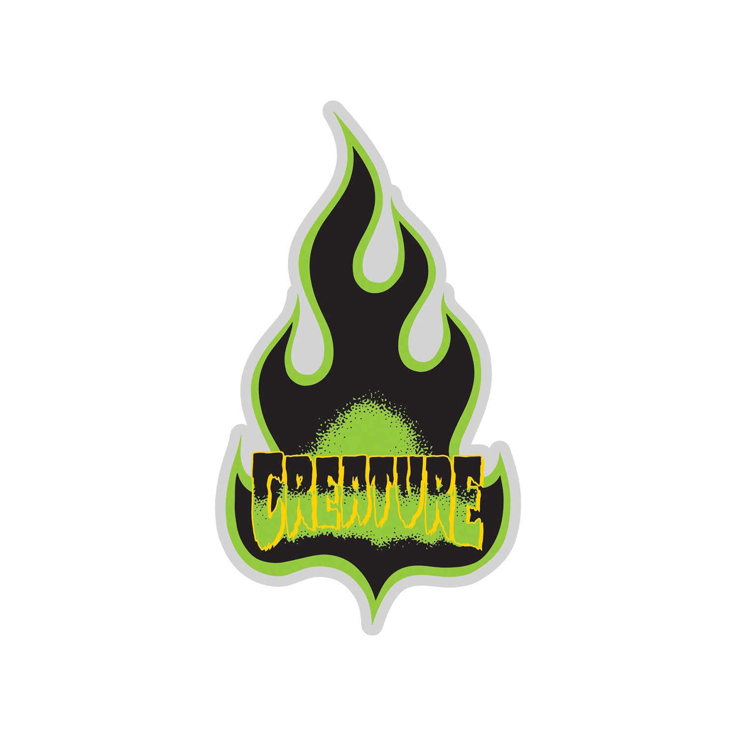 Creature Skateboard Mylar Sticker Logo Flame Green 6.25" x 3.125"