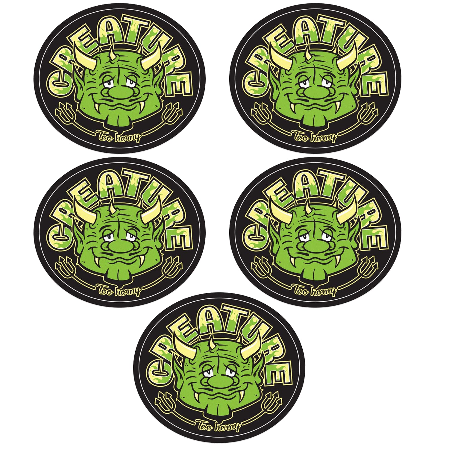 Includes 5 Stickers. Vinyl Sticker from Creature Skateboards. Measures 3.5" x 3".