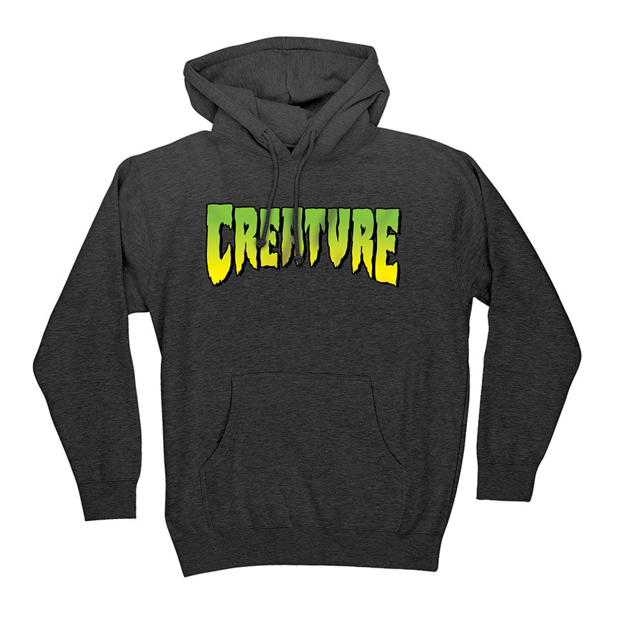 The Creature Logo men's heavyweight fleece regular fit pullover hooded sweatshirt features large front classic Creature Logo printed in soft hand ink.
