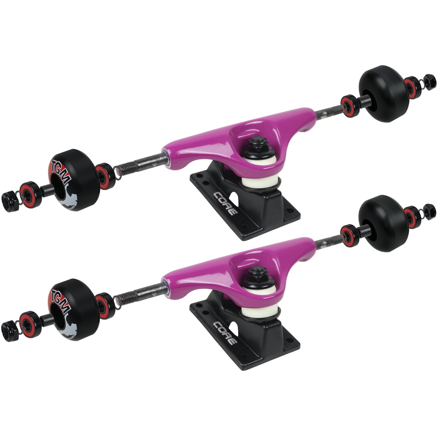 Resin Hybrid Maple Construction. 7-ply Hardrock & Canadian Maple blend with Epoxy Resin Glue. Single Deck Press (Same shape and concave every time). The Darkstar Anodize Deck Measures 8.0" Wide. Comes with Core trucks, 52mm TGM logo wheels, Amp abec 5 bearings, Black Diamond Griptape, risers, and hardware. Core trucks are light weight and feature heavy duty aluminum with grade 8 steel kingpins and axles, as well as USA made bushings and pivot cups. 52mm 99A are the perfect wheels for both street and park skating. Like the name states, Amp bearings are stimulants for your wheels! Light synthetic oil, Delrin Crowns, and Rubber Serviceable Shields are a few of the things that makes these bearings one of the best Abec 5 rated bearings on the market. Arrives un-assembled which allows for customization and a feeling of accomplishment. Skaters love building their boards! Easy to assemble!
