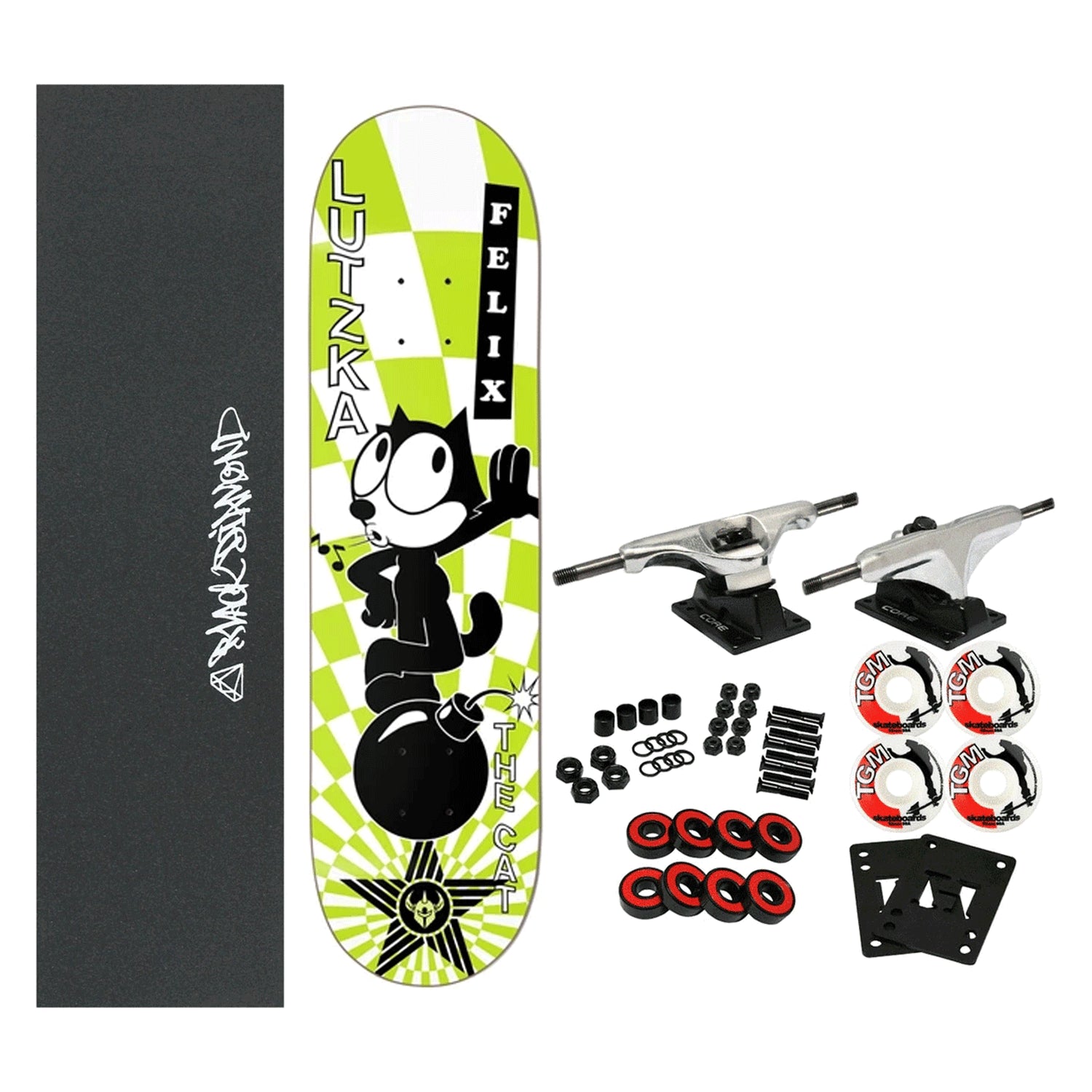 7-ply 100% North American Maple with Epoxy Resin Glue. Single Deck Press (Same shape and concave every time). This board measures 8.125" x 31.7" with a 14.25" wheelbase, full concave and steep kick. Comes with Core trucks, 52mm TGM logo wheels, Amp abec 5 bearings, Black Diamond Griptape, risers, and hardware. Core trucks are light weight and feature heavy duty aluminum with grade 8 steel kingpins and axles, as well as USA made bushings and pivot cups. 52mm 99A are the perfect wheels for both street and park skating. Like the name states, Amp bearings are stimulants for your wheels! Light synthetic oil, Delrin Crowns, and Rubber Serviceable Shields are a few of the things that makes these bearings one of the best Abec 5 rated bearings on the market. Arrives un-assembled which allows for customization and a feeling of accomplishment. Skaters love building their boards! Easy to assemble!