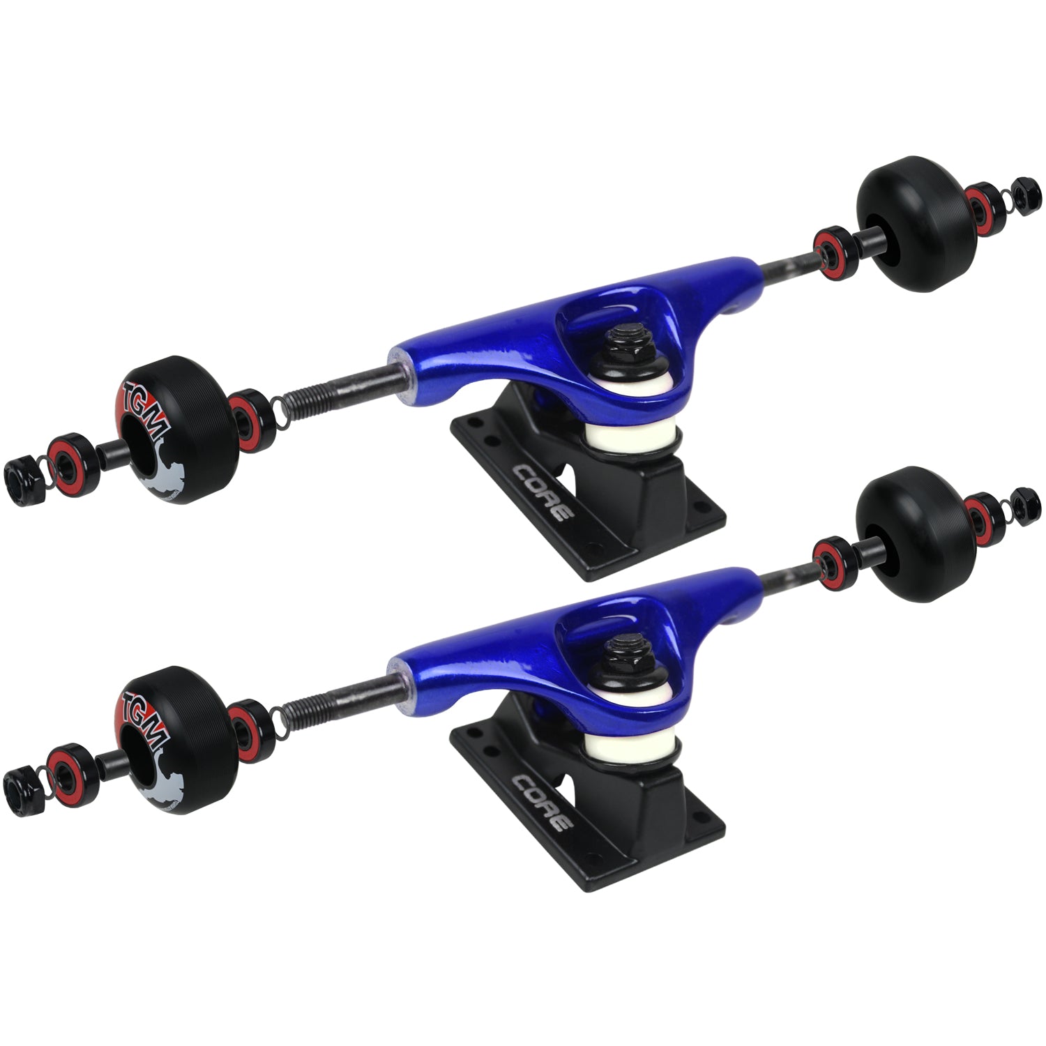 7-ply 100% North America Maple with Epoxy Resin Glue. Individually Pressed, Stronger than industry standard 7-ply. Measures 8.125" x 31.7" with a 14.25" wheelbase and Full Concave. Comes with Core trucks, 52mm TGM logo wheels, Amp abec 5 bearings, Black Diamond Griptape, risers, and hardware. Core trucks are light weight and feature heavy duty aluminum with grade 8 steel kingpins and axles, as well as USA made bushings and pivot cups. 52mm 99A are the perfect wheels for both street and park skating. Like the name states, Amp bearings are stimulants for your wheels! Light synthetic oil, Delrin Crowns, and Rubber Serviceable Shields are a few of the things that makes these bearings one of the best Abec 5 rated bearings on the market. Arrives un-assembled which allows for customization and a feeling of accomplishment. Skaters love building their boards! Easy to assemble!