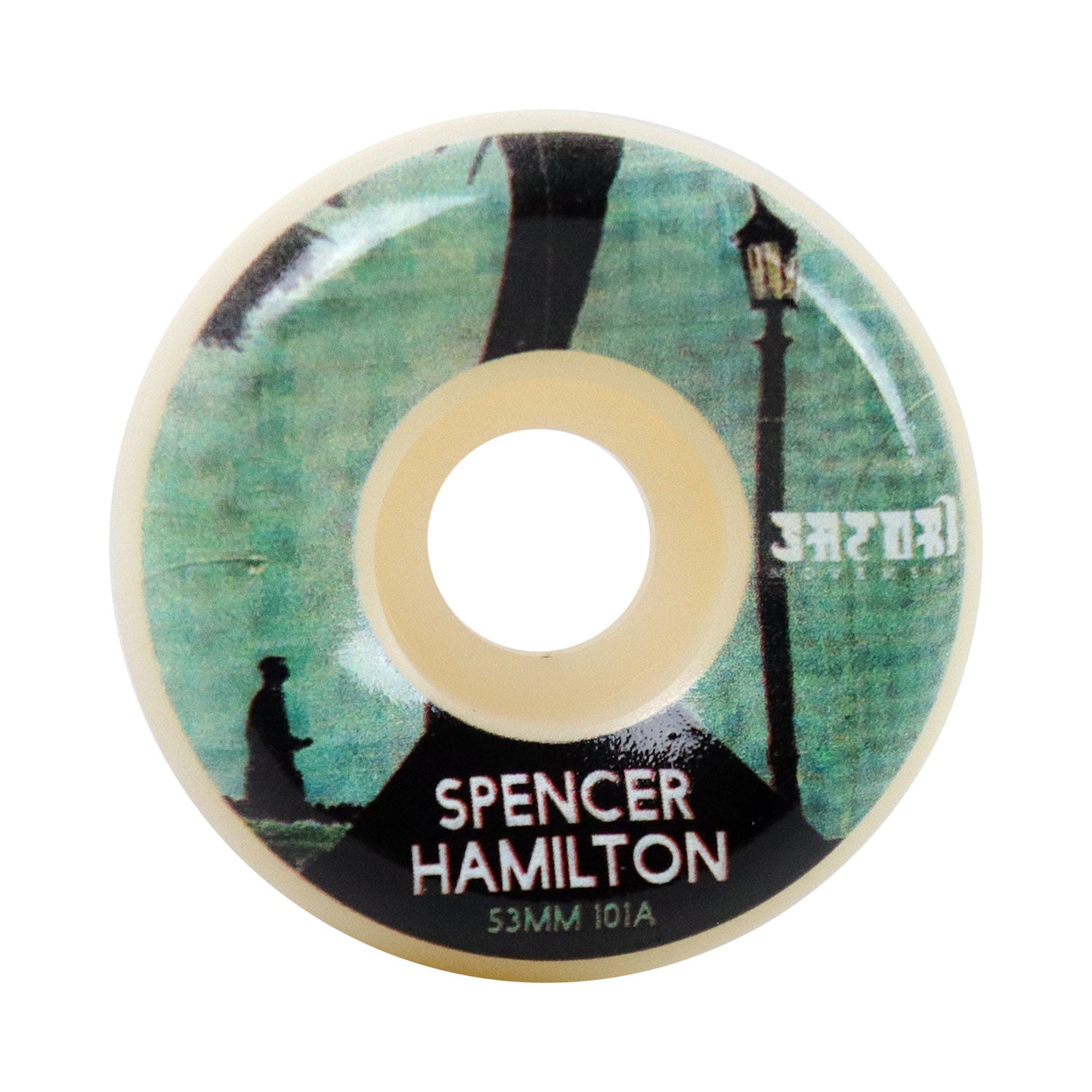 WHEELS: Satori wheels feature premium USA made urethane that is perfect for both street and park skateboarding. Conical Shape. Conical refers to the cone shape produced by using flatter surfaces from the contact patch to the side of the wheel. This means a wider riding surface with a cut away shape which gives you more control and speed. This wheel measures 53mm x 32.5mm with a 20.5mm riding surface and 101A hardness. Comes in a pack of 4 wheels. Satori sticker included in packaging!