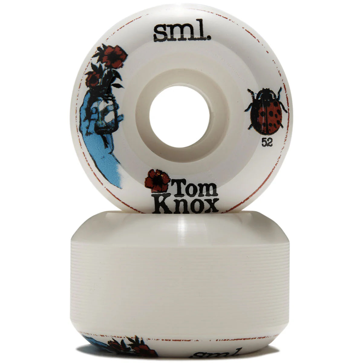 WHEELS: Sml Wheels, made in the USA using premium urethane. Designed for both street and park skating. OG 99A durometer wheel formula is fast and smooth. Featuring the V-cut shape. The shape has a nice, wide contact patch and conical cut sidewall providing more grip, stability, and a smoother ride. Consistent lock in on grinds and lighter weight than a standard wheel. Wheel dimensions: 52mm in diameter and 33.5mm wide with a 21mm road surface.