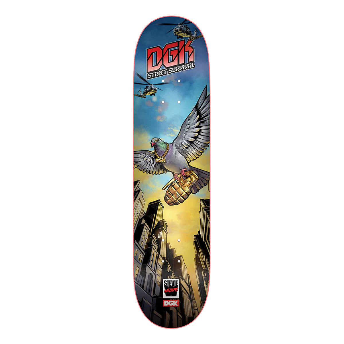 7-ply Maple with Assorted Stain Veneers. Full Graphic Bottom. Top Screen Graphics. Stevie Williams Professional Endorsed Skateboard. Measures 8.25" x 31.85" with a 14.31" wheelbase.