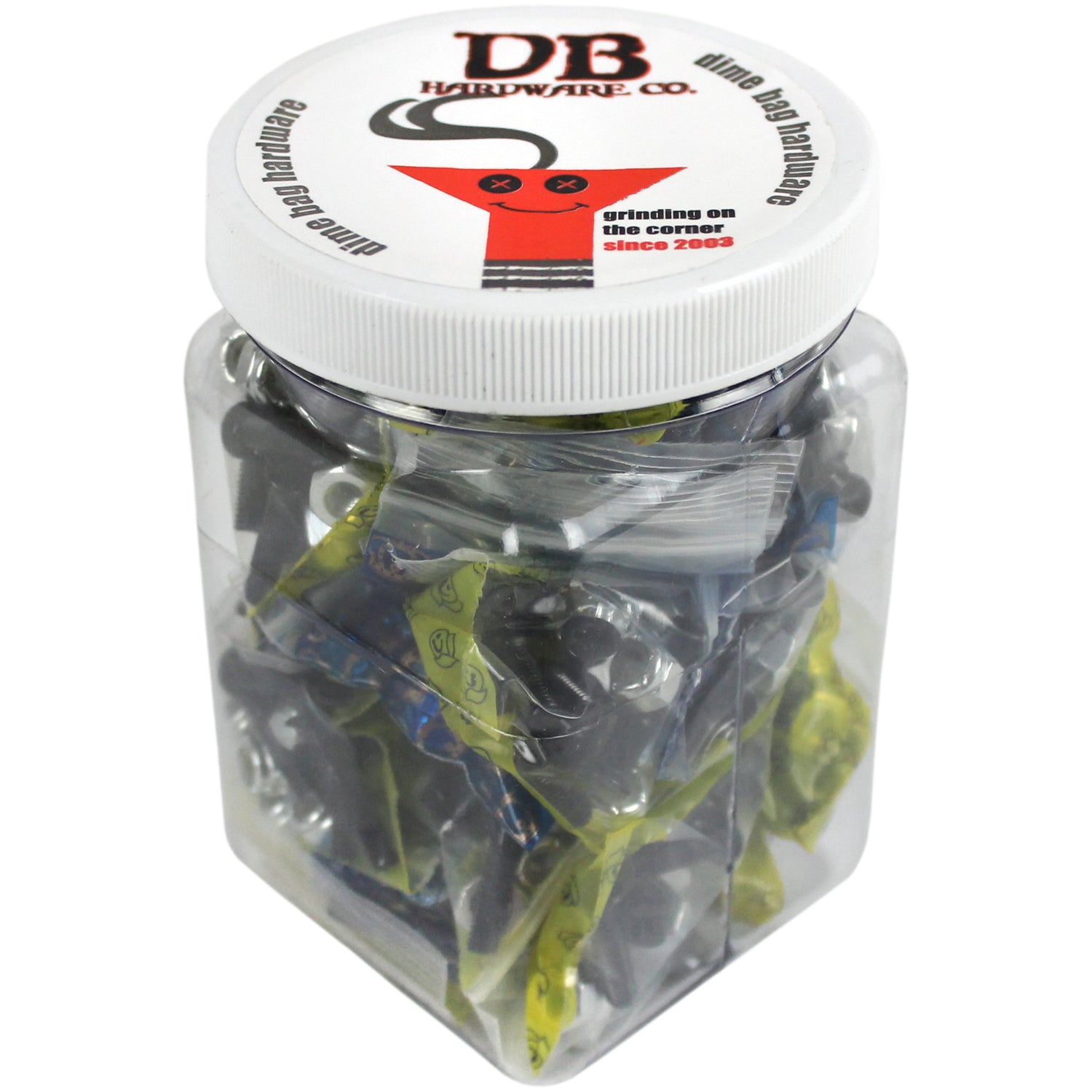 Dime Bag has found yet another way to save you some money. Presenting the Dime Bag 25 Pack Shop Display. This includes 25 pre-bagged sets of Dime Bag 1" Black mounting hardware. Great for front counters in skate shops, someone looking to get hardware for all of their friends, or someone who just goes through a lot of hardware.