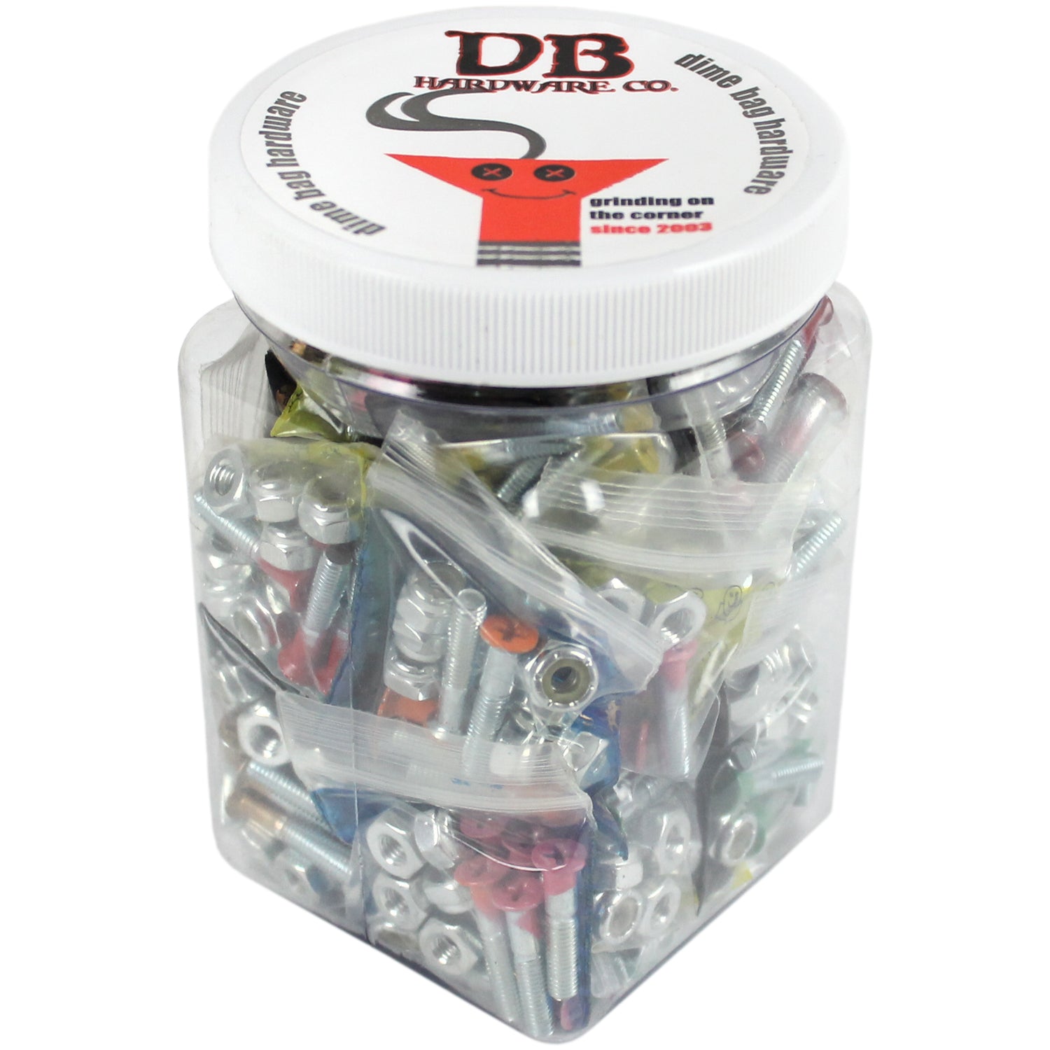 Dime Bag has found yet another way to save you some money. Presenting the Dime Bag 25 Pack Shop Display. This includes 25 pre-bagged sets of Dime Bag 1" phillips mounting hardware in miscellaneous colors. Mix and match packs to get a unique colorway that fits your style. Great for front counters in skate shops, someone looking to get hardware for all of their friends, or someone who just goes through a lot of hardware.