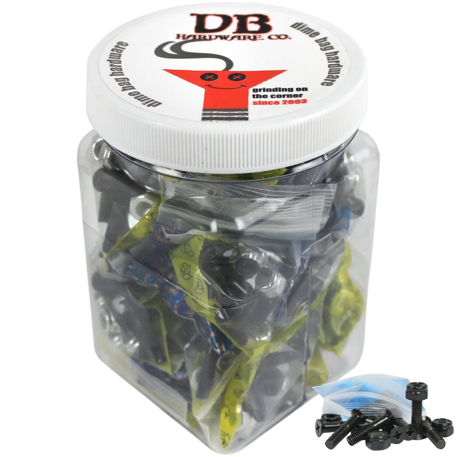 Dime Bag has found yet another way to save you some money. Presenting the Dime Bag 25 Pack Shop Display. This includes 25 pre-bagged sets of Dime Bag 7/8" Black mounting hardware. The same hardware you love, but more of it. Great for front counters in skate shops, someone looking to get hardware for all of their friends, or someone who just goes through a lot of hardware.