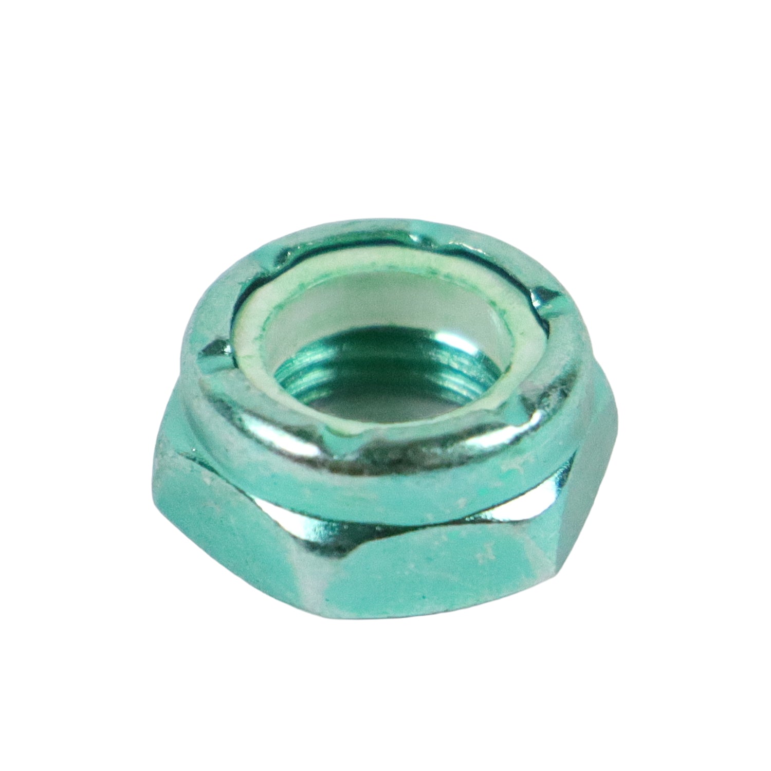 These are nylon-insert lock nuts which prevent loosening during riding. The nylon allows the threads on the bolt to grip and stay tight while your board is riding over both smooth or rough surfaces.