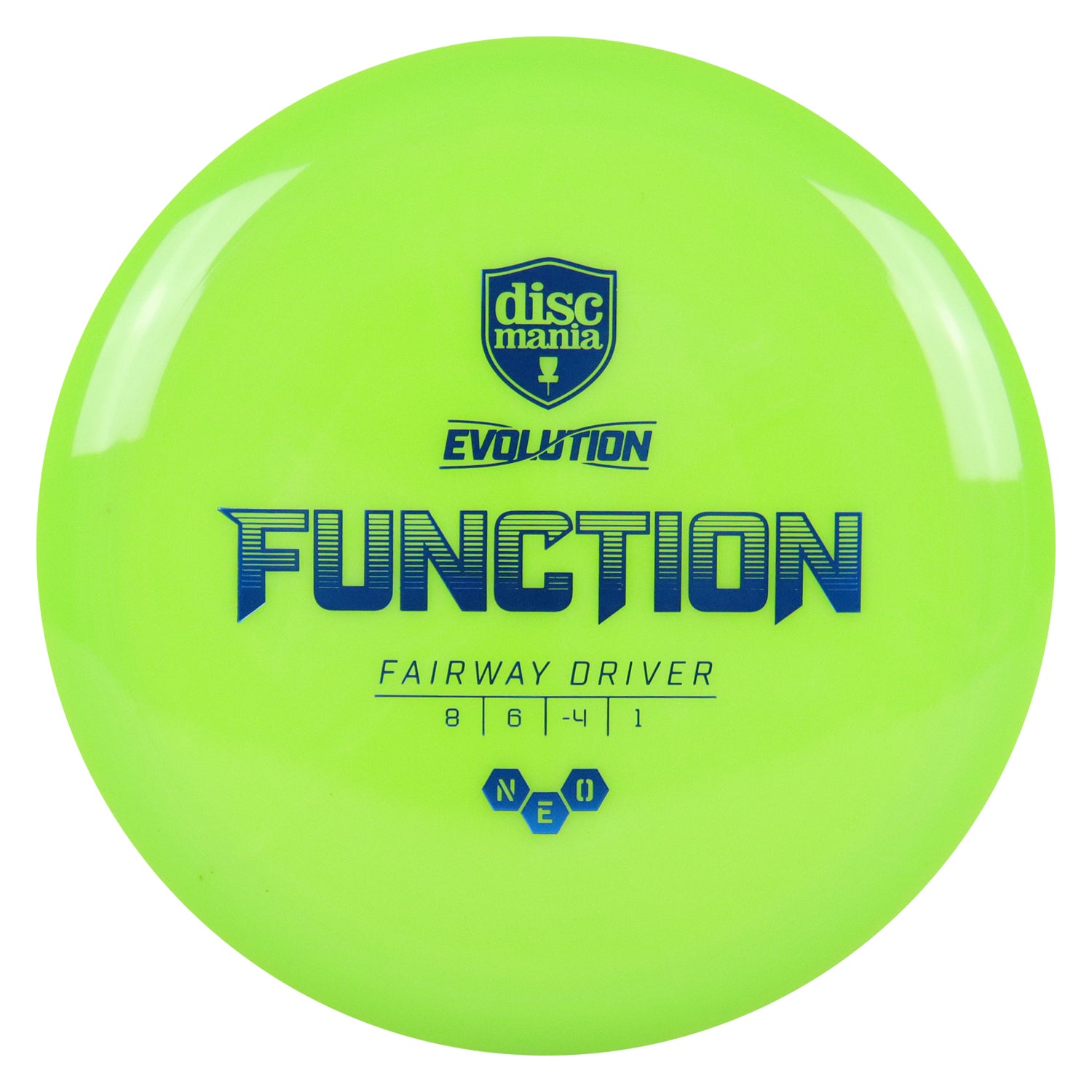 Function is an easy to throw fairway driver that offers the most understable flight path of any Discmania disc produced to date. Those that enjoy the performance of the Essence but seek something just a bit flipper for their game are going to fall in love with this one right away. The Function is engineered for players with lower level arm speeds, beginners/amateurs, and those that enjoy the flight of an understandable fairway driver that executes turning shots quickly and easily. Neo - Semi-translucent, premium plastic. Not only great looking but also the most durable and rigid Evolution line plastic! Still has some flex to it, and thanks to the special finish it offers an awesome grip.