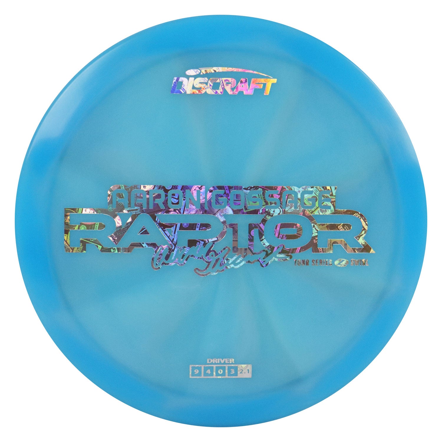Discraft Disc Golf Aaron Gossage 2025 Tour Series Z Swirl Raptor Driver 9/4/0/3 Blue/Money Holo 173-174g