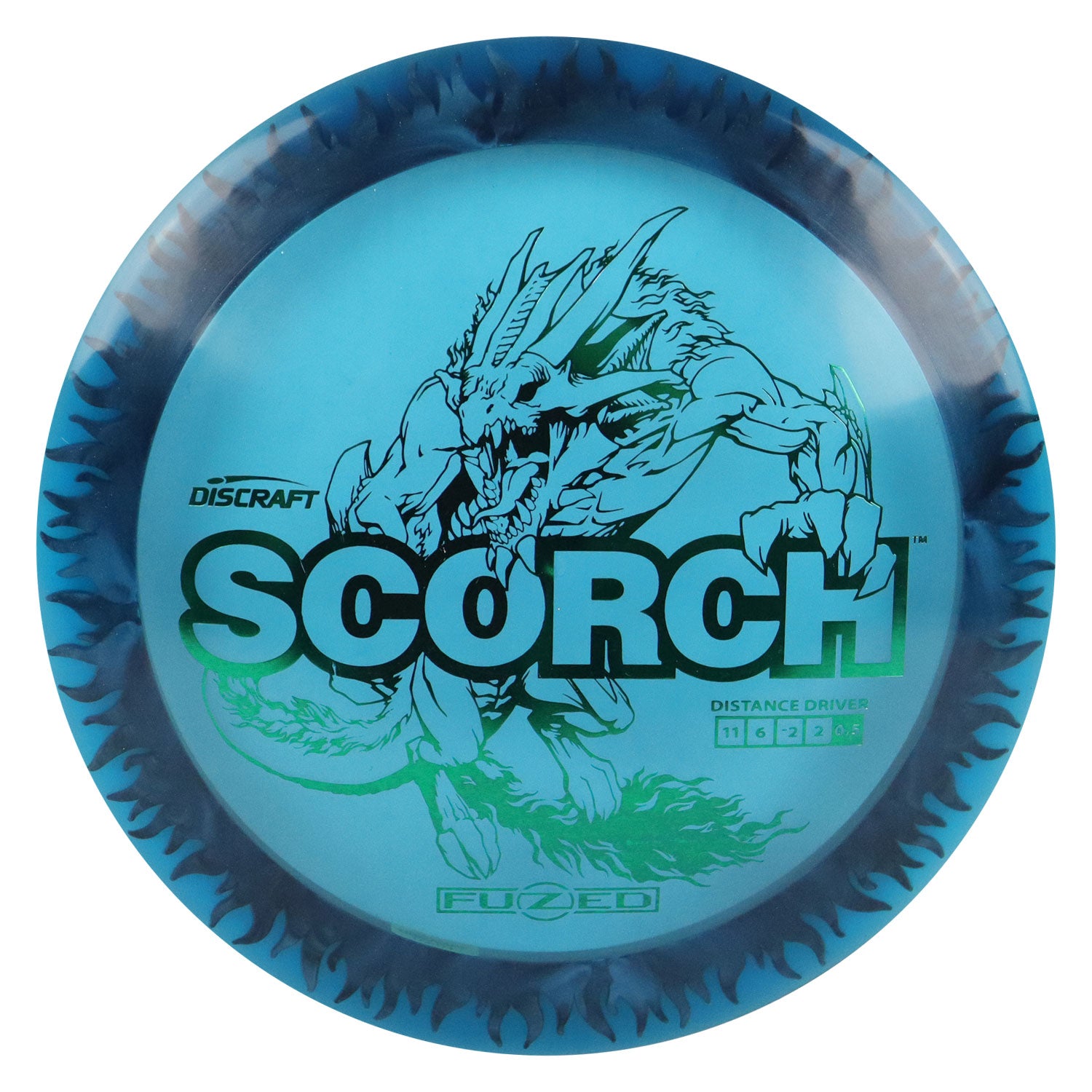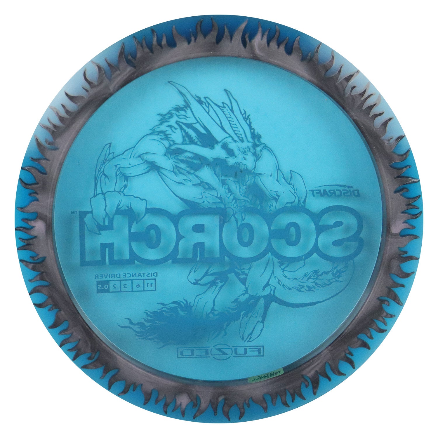Discraft Disc Golf FuZed Line Scorch with Flame Pattern Distance Driver 11/6/-2/2 Blue with Black Flame/Green 173-174g