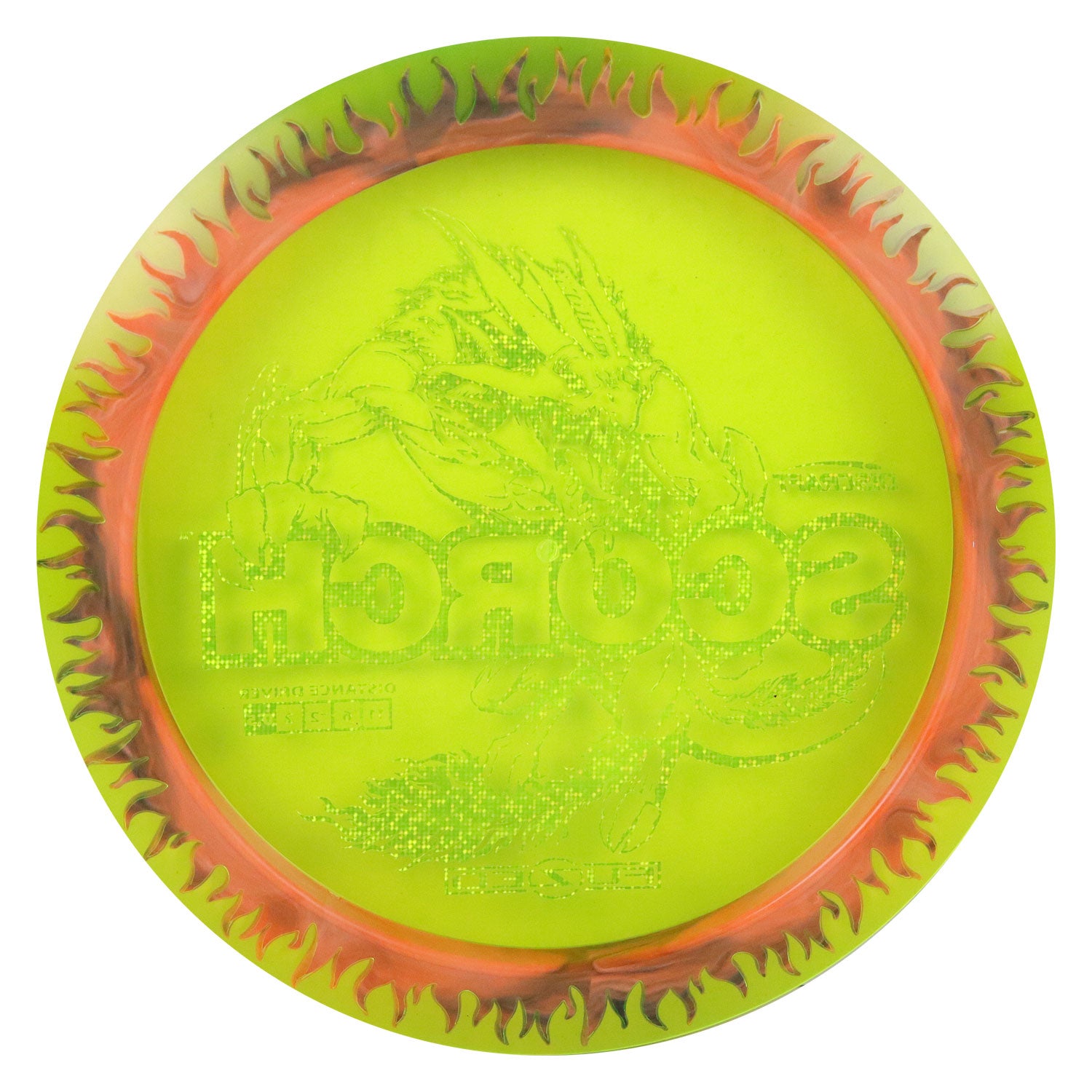Discraft Disc Golf FuZed Line Scorch with Flame Pattern Distance Driver 11/6/-2/2 Yellow with Orange Black Flame/Green Dots 170-172g