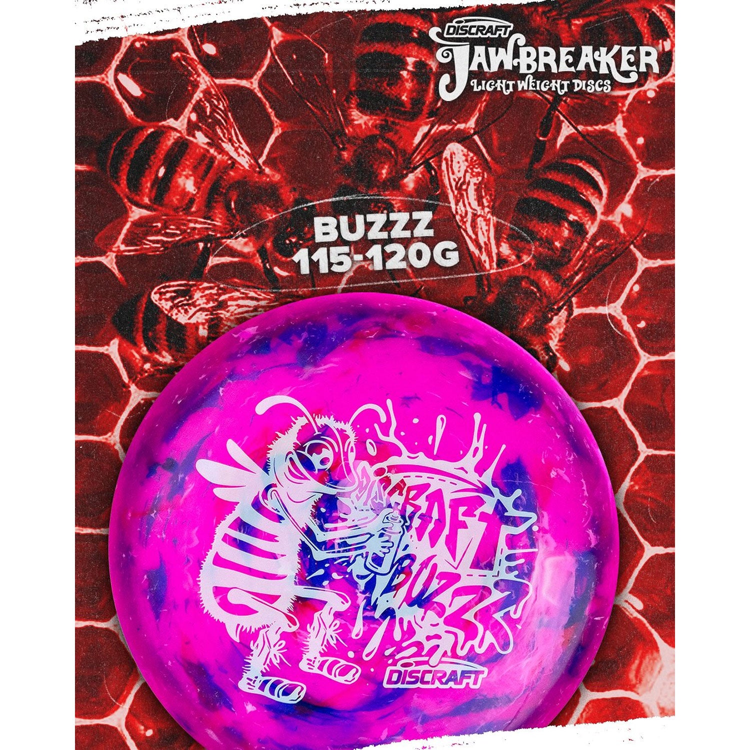 A fan-favorite midrange made even more accessible. The Lightweight Jawbreaker Buzzz offers the same trusted glide and control as its full-weight counterpart, but in a 110–130g range ideal for developing players, youth, or those with slower arm speeds. This run features a grippy, swirly Jawbreaker blend that enhances control and comfort. Perfect for straight shots, touchy lines, and confident approaches.