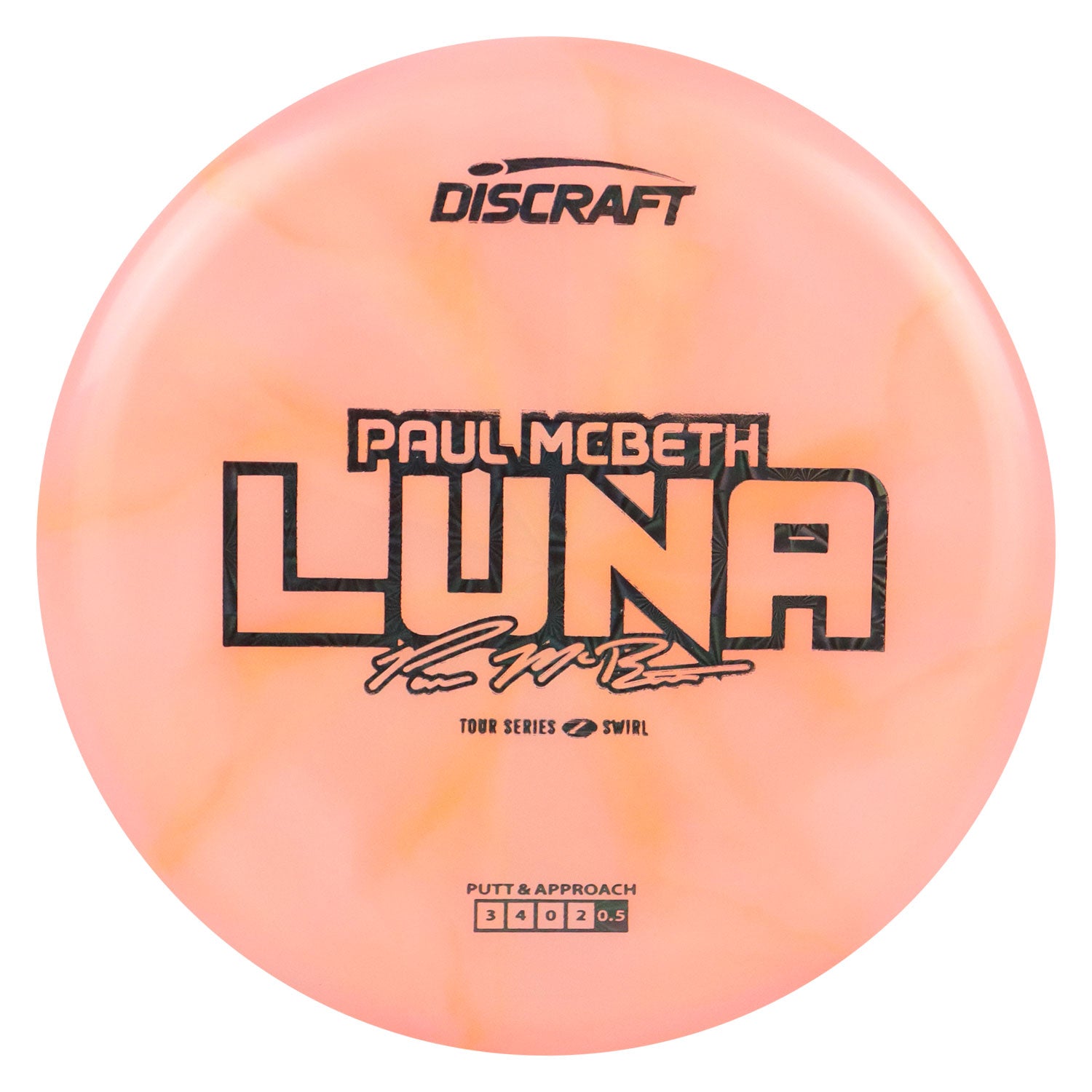 Discraft Disc Golf Paul McBeth 2025 Tour Series Z Swirl Luna Putter 3/4/0/2 Peach/Black Holo Prisms 170-172g