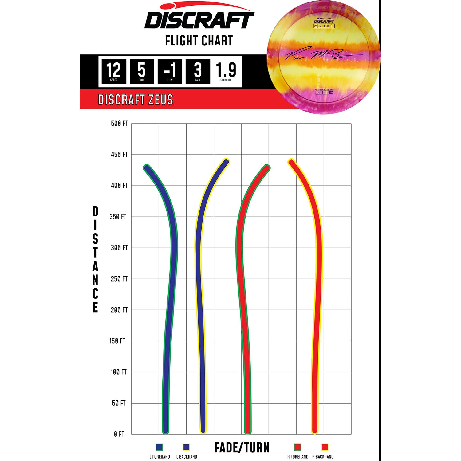 The Zeus is Paul McBeth’s first distance driver in his lineup. The Zeus is a powerfully overstable driver meant for full power distance drives for advanced players.