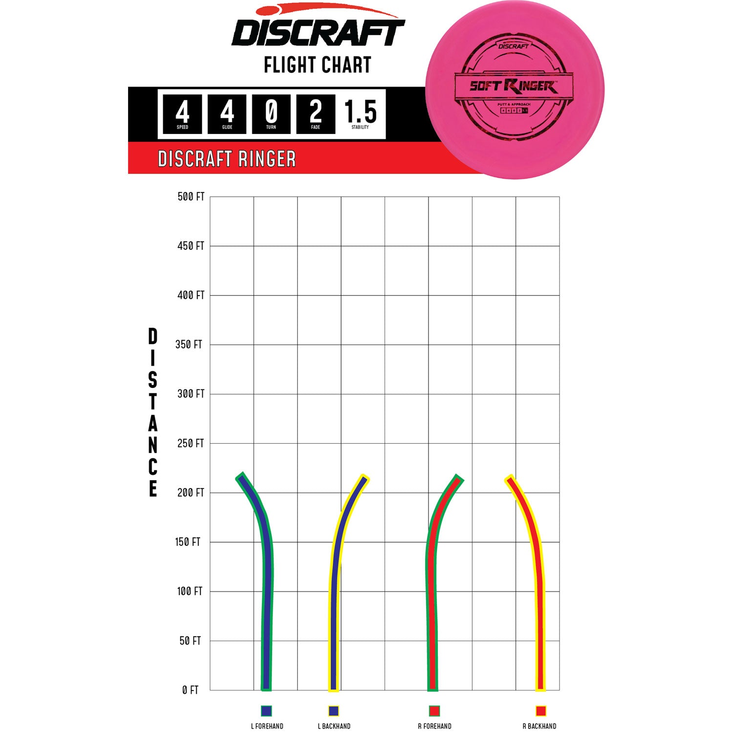 Discraft Disc Golf Putter Line Soft Ringer Putter 4/4/0/2 Soft Pink/Rainbow 170-172g