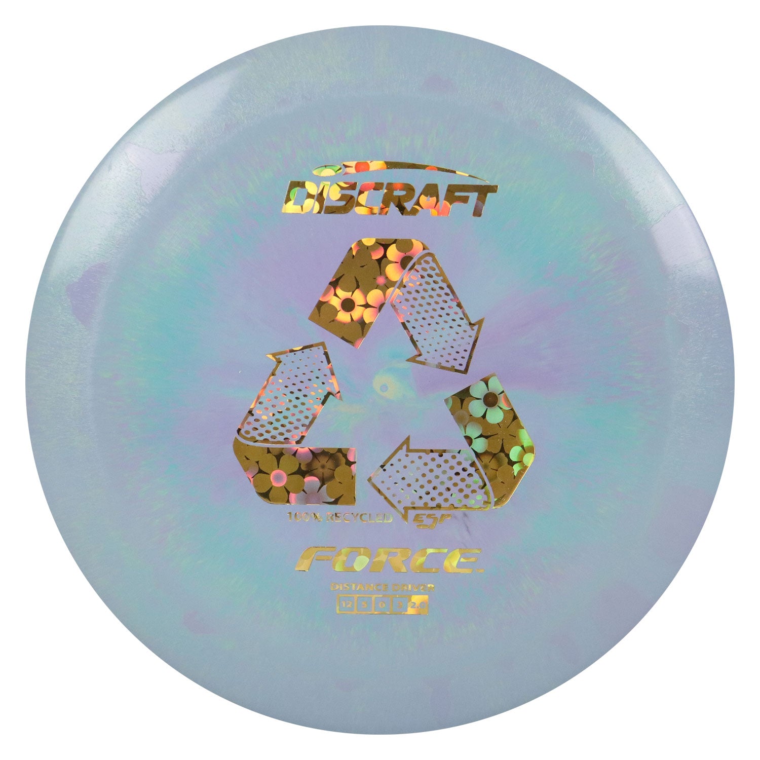 Discraft Disc Golf Recycled ESP Force Distance Driver 12/5/0/3 Green Purple/Gold Flowers 167-169g