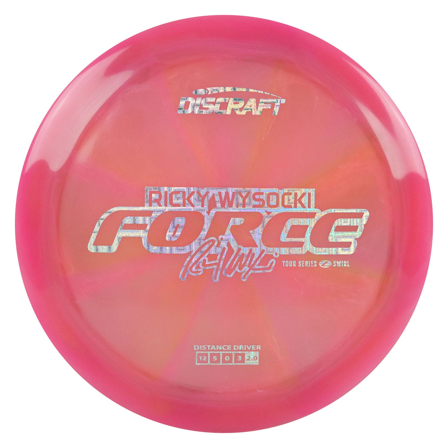 Discraft Disc Golf Ricky Wysocki 2025 Tour Series Z Swirl Force Driver 12/5/0/3 Pink/Cubic Prisms 173-174g