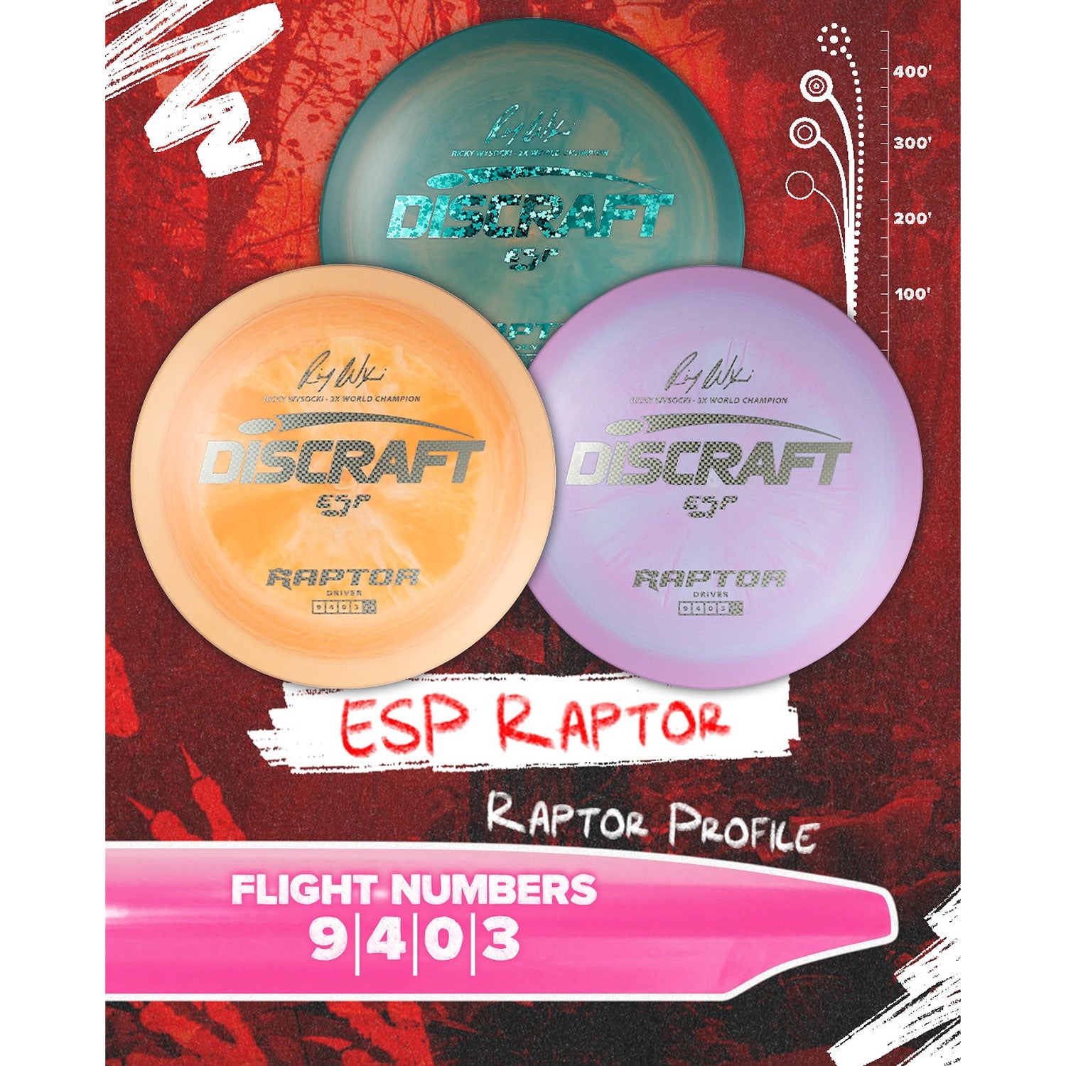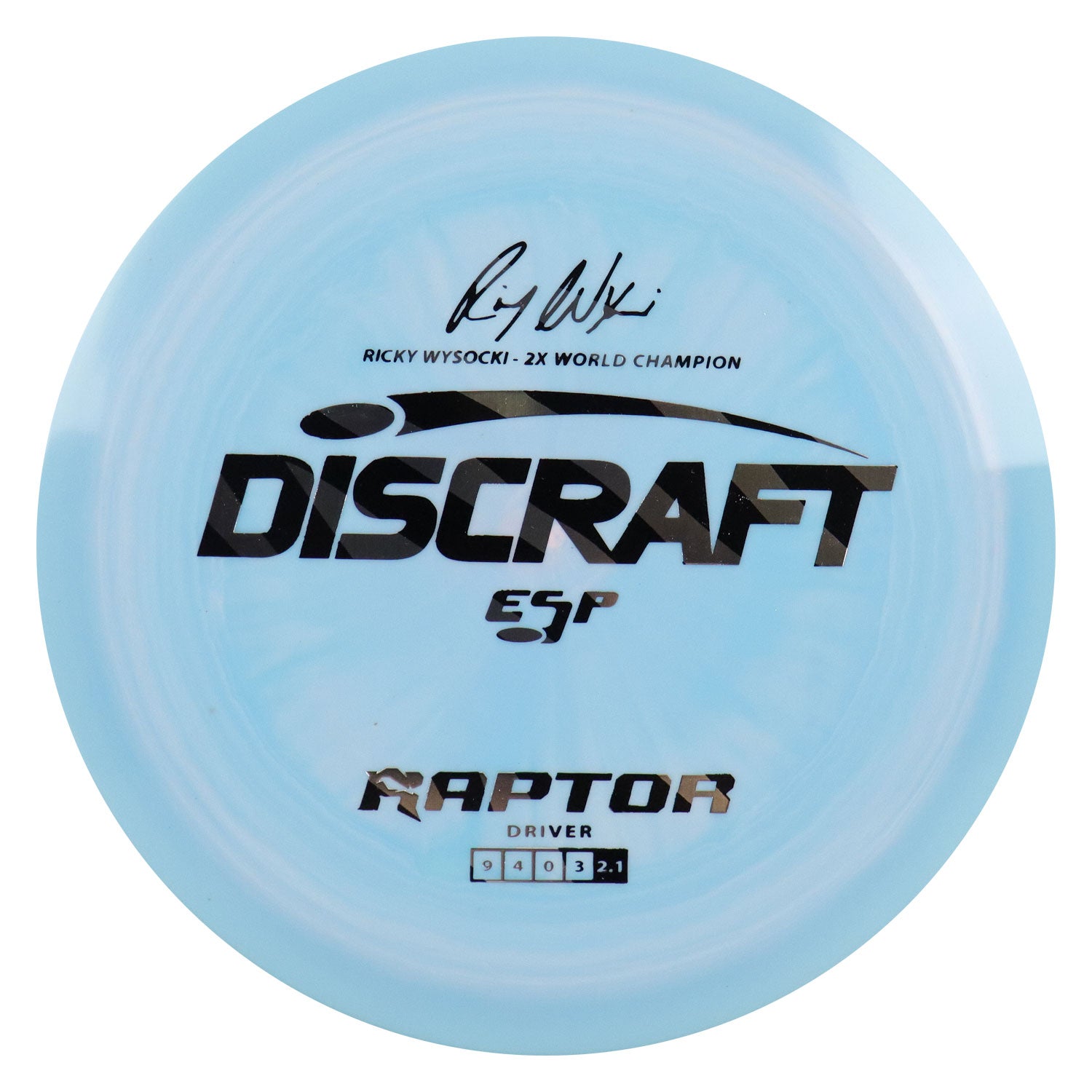 Discraft Disc Golf Ricky Wysocki Signature Series ESP Raptor Driver 9/4/0/3 Light Blue/Black Silver 173-174g