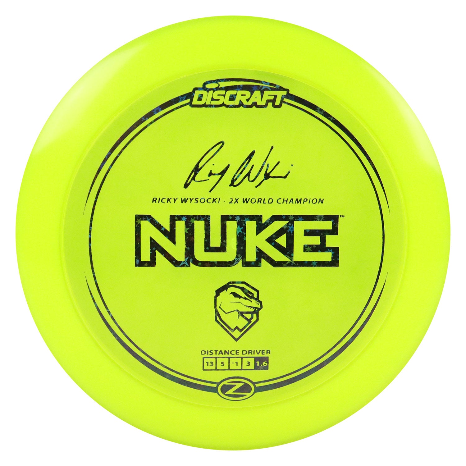 Discraft Disc Golf Ricky Wysocki Signature Series Z Line Nuke Driver 13/5/-1/3 Yellow/Black Stars 170-172g