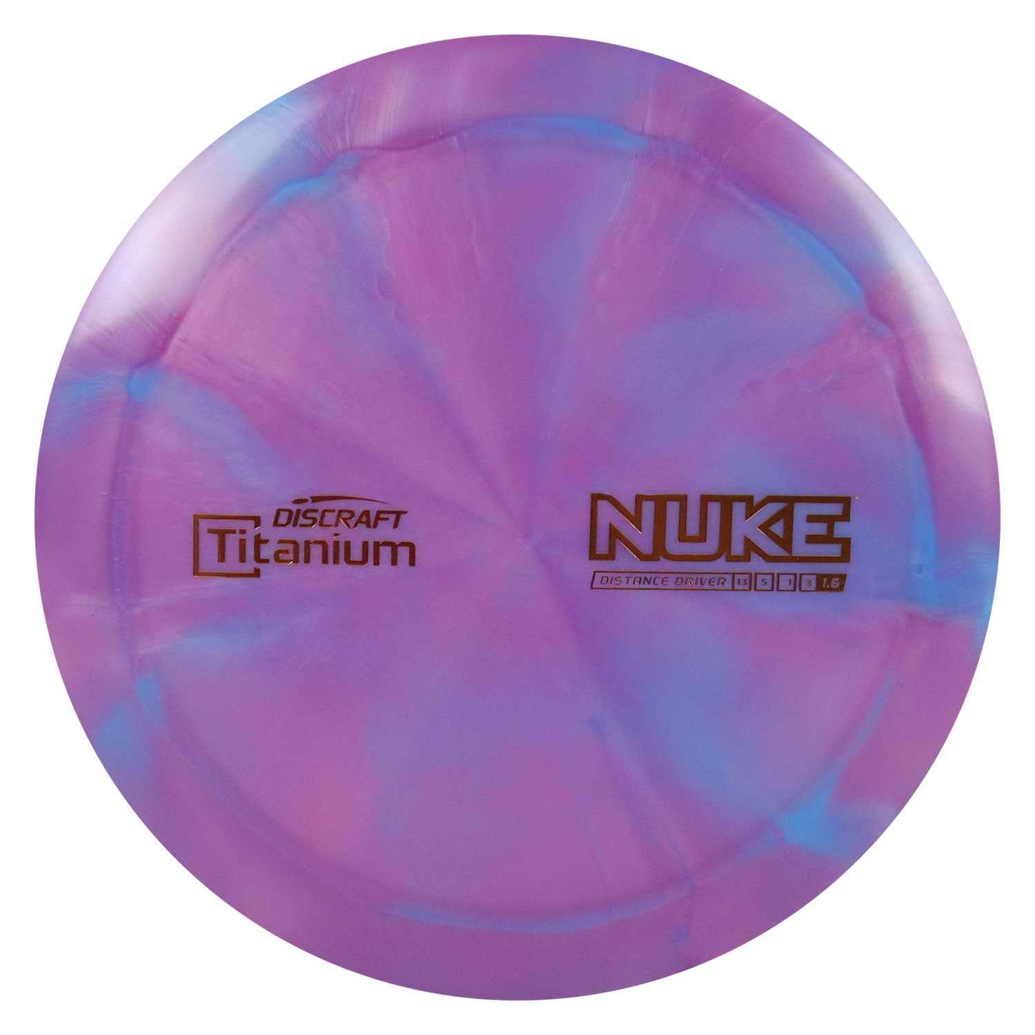 Discraft Disc Golf Titanium Swirl Nuke Distance Driver 13/5/-1/3 Purple Blue/Bronze 173-174g