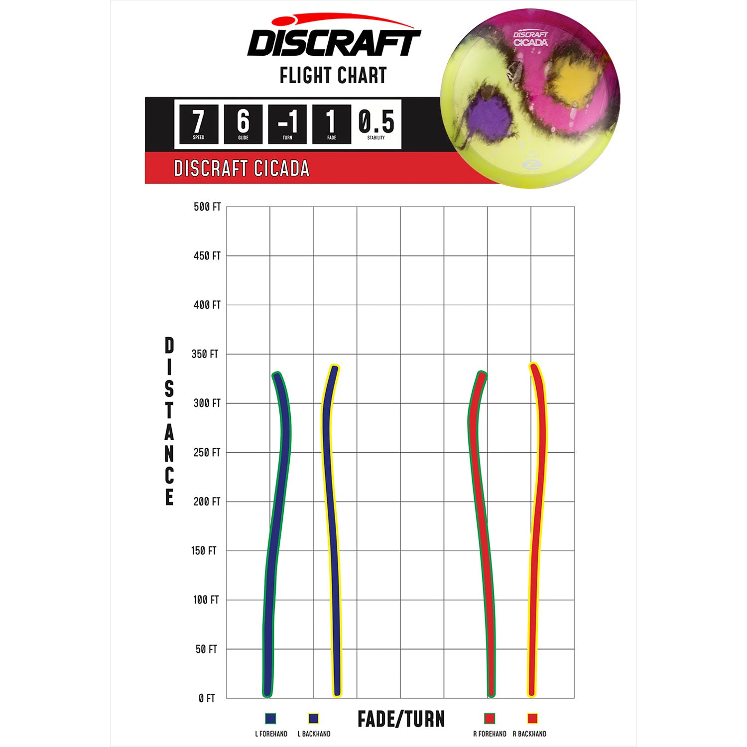 Discover a disc that soars beyond the ordinary, the Cicada, Discraft's latest in the realm of drivers. Fashioned from Z plastic, the Cicada ensures lasting beauty and performance. Its durability mirrors the tenacity of the cicada which has stood the test of time. With a trajectory that's undeniably straight, the Cicada is a force to be reckoned with. Unleash its potential and watch it flip seamlessly. This disc embodies the spirit of adaptability, offering players the versatility needed for strategic shot shaping throughout any course. The Cicada finds its rightful place in Discraft's lineup. It doesn’t just belong; it thrives, elevating the game of disc golf and complementing Discraft's legacy of producing outstanding discs.