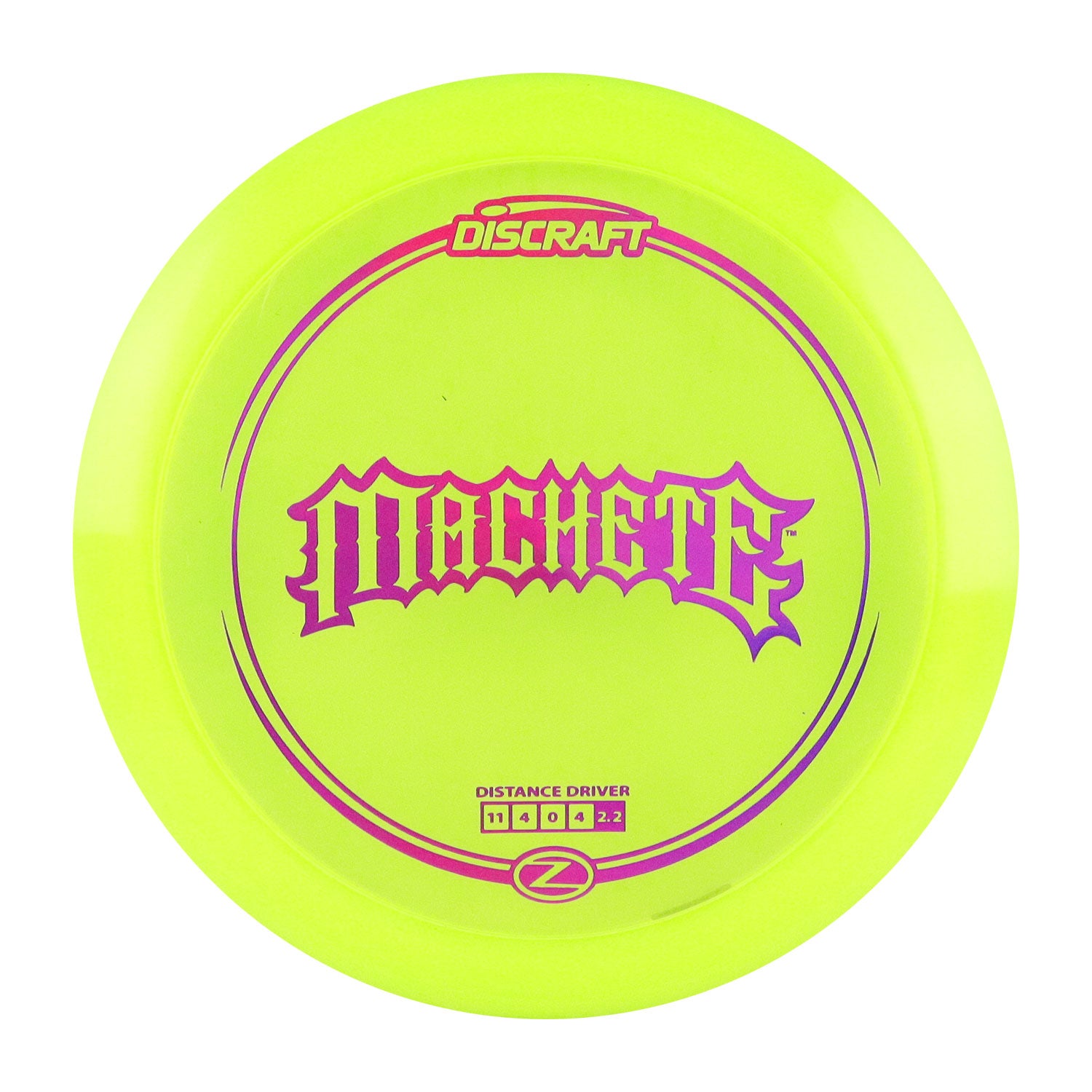 Discraft Disc Golf Z Line Machete Distance Driver 11/4/0/4 Yellow/Purple Holo 173-174g