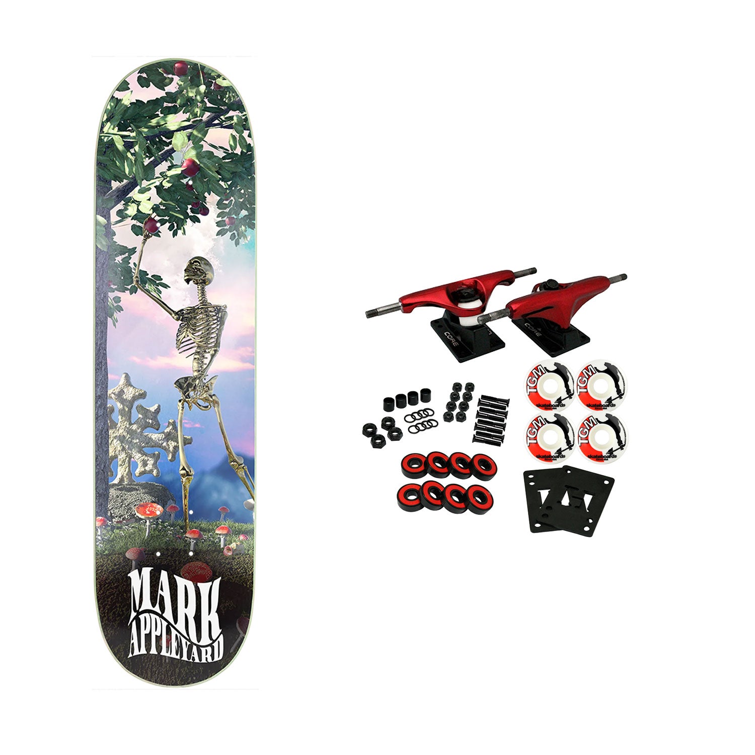 Premium 7-Ply North American Maple. Shaped and manufactured by BBS for Disorder Skateboards. Comes with Core trucks, 52mm TGM logo wheels, Amp abec 5 bearings, Black Diamond Griptape, risers, and hardware. Core trucks are light weight and feature heavy duty aluminum with grade 8 steel kingpins and axles, as well as USA made bushings and pivot cups. 52mm 99A are the perfect wheels for both street and park skating. Like the name states, Amp bearings are stimulants for your wheels! Light synthetic oil, Delrin Crowns, and Rubber Serviceable Shields are a few of the things that makes these bearings one of the best Abec 5 rated bearings on the market. Arrives un-assembled which allows for customization and a feeling of accomplishment. Skaters love building their boards! Easy to assemble!