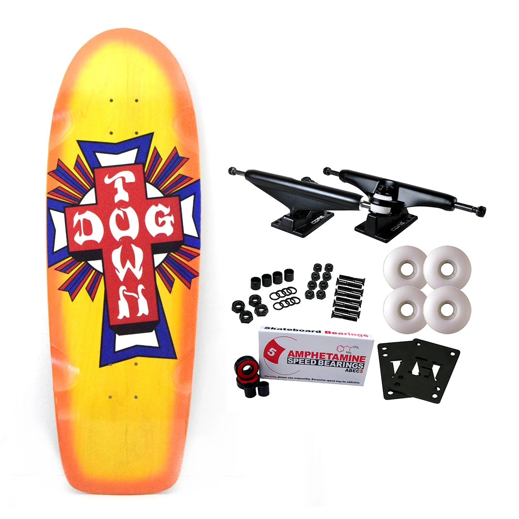 Dogtown Cross 70s Rider Deck. Classic 70's shape with a Modern Concave and Wheel Wells. Made at PS Stix. Measures 10" x 30.575" with a 14.75" wheelbase. Comes with Core trucks, 58mm 97A wheels, Amp abec 5 bearings, Black Diamond Griptape, risers, and hardware. Core trucks are light weight and feature heavy duty aluminum with grade 8 steel kingpins and axles, as well as USA made bushings and pivot cups. 58mm 97A are the perfect wheels for both street and park skating. Like the name states, Amp bearings are stimulants for your wheels! Light synthetic oil, Delrin Crowns, and Rubber Serviceable Shields are a few of the things that makes these bearings one of the best Abec 5 rated bearings on the market. Arrives un-assembled which allows for customization and a feeling of accomplishment. Skaters love building their boards! Easy to assemble!