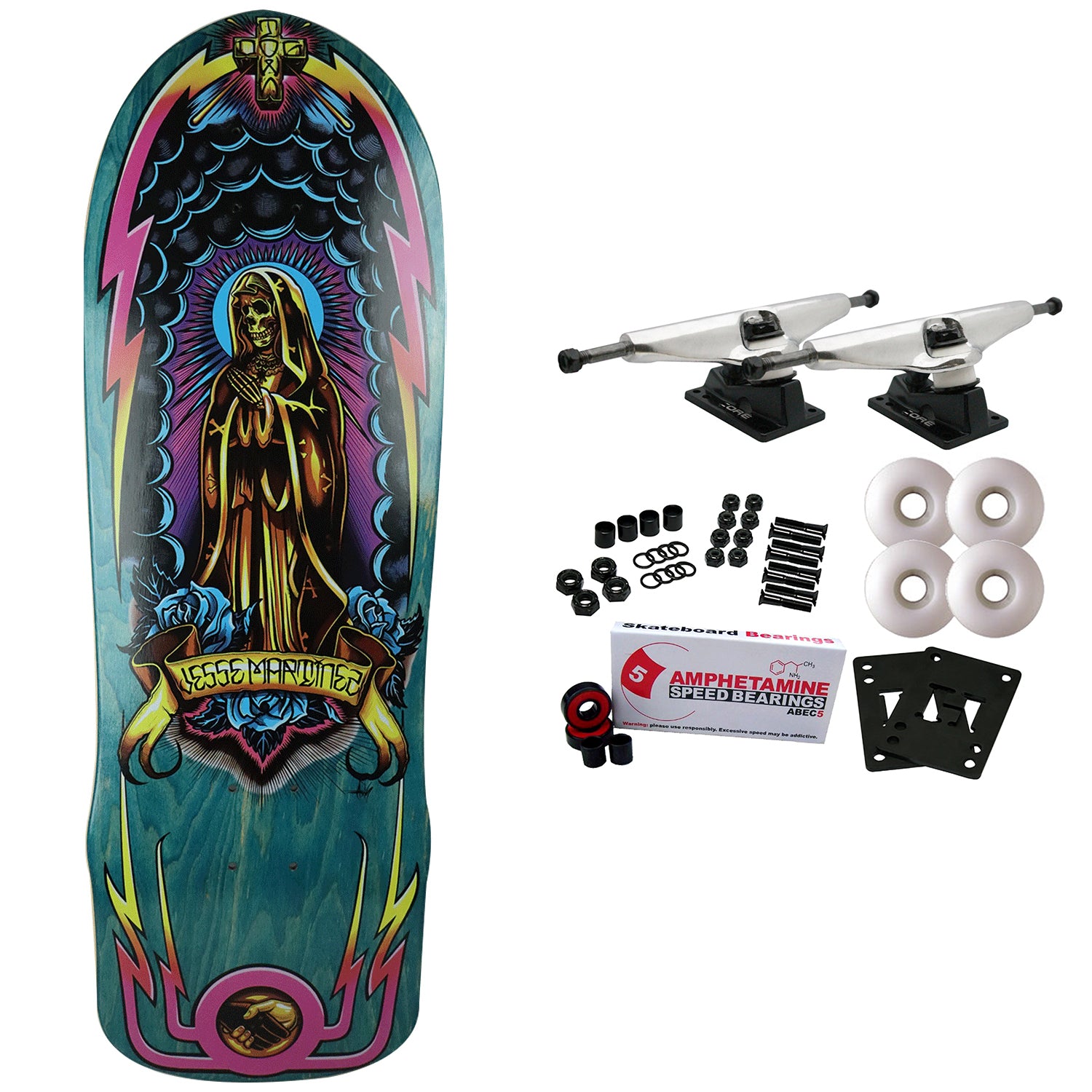 Dogtown Jesse Martinez Guadalupe Handshake 1987 deck. Jesse's 1987 Pro shape. Art by Axis. Made at PS Stix. Measures 10" x 30.25" with a 15.5" wheelbase. Comes with Core trucks, 58mm 97A wheels, Amp abec 5 bearings, Black Diamond Griptape, risers, and hardware. Core trucks are light weight and feature heavy duty aluminum with grade 8 steel kingpins and axles, as well as USA made bushings and pivot cups. 58mm 97A are the perfect wheels for both street and park skating. Like the name states, Amp bearings are stimulants for your wheels! Light synthetic oil, Delrin Crowns, and Rubber Serviceable Shields are a few of the things that makes these bearings one of the best Abec 5 rated bearings on the market. Arrives un-assembled which allows for customization and a feeling of accomplishment. Skaters love building their boards! Easy to assemble!