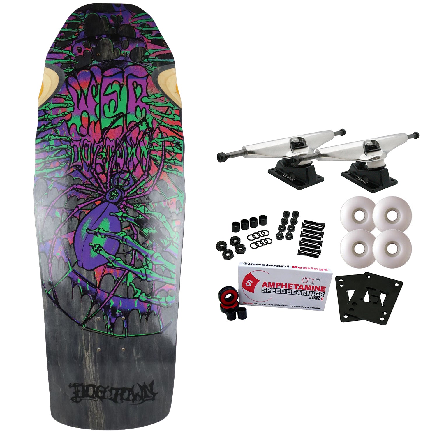 7-Ply North American Maple. The Web was an instrumental board design in the early development of Dogtown team riders and grass root skateboarding of the mid 1980's. Made by PS Stix. Measures 10.25" x 30.7" with a 15.5" wheelbase. Comes with Core trucks, 58mm 97A wheels, Amp abec 5 bearings, Black Diamond Griptape, risers, and hardware. Core trucks are light weight and feature heavy duty aluminum with grade 8 steel kingpins and axles, as well as USA made bushings and pivot cups. 58mm 97A are the perfect wheels for both street and park skating. Like the name states, Amp bearings are stimulants for your wheels! Light synthetic oil, Delrin Crowns, and Rubber Serviceable Shields are a few of the things that makes these bearings one of the best Abec 5 rated bearings on the market. Arrives un-assembled which allows for customization and a feeling of accomplishment. Skaters love building their boards! Easy to assemble!