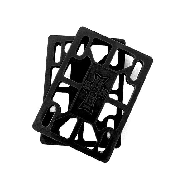 Dogtown Skateboard Risers. Includes a Pair of Risers. The main purpose of riser pads is to prevent wheel-bite. Risers also give your board more ride height which allows for bigger pop. Dogtown risers work on both new school and old school skateboards, and work with any bolt-pattern.