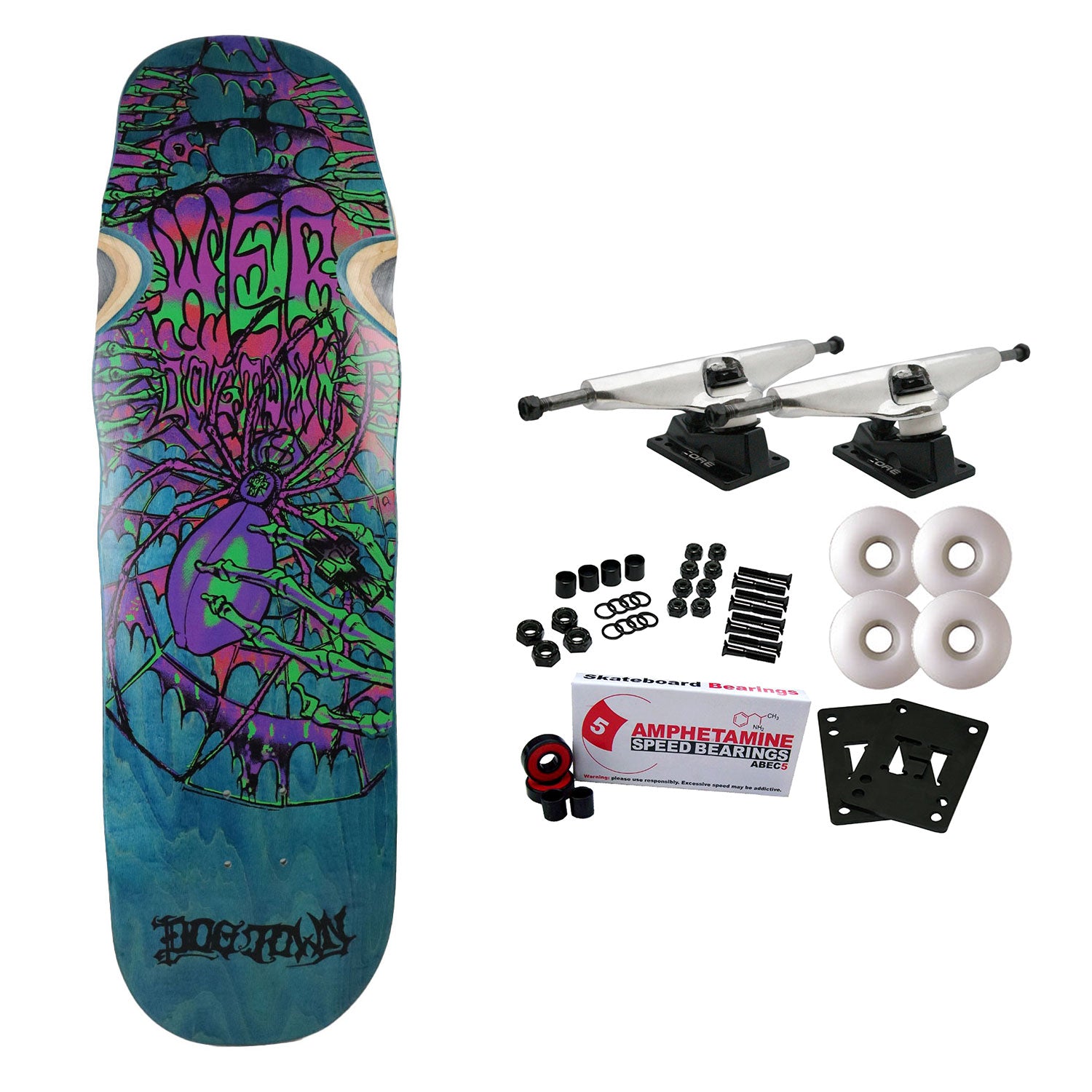 Dogtown Web Pool Deck. Modern Shape Designed off the 80s Web Mini. Front Wheel Wells. Made at PS Stix. Measures 9.25" x 32.2" with a 14.5" wheelbase. Comes with Core trucks, 58mm 97A wheels, Amp abec 5 bearings, Black Diamond Griptape, risers, and hardware. Core trucks are light weight and feature heavy duty aluminum with grade 8 steel kingpins and axles, as well as USA made bushings and pivot cups. 58mm 97A are the perfect wheels for both street and park skating. Like the name states, Amp bearings are stimulants for your wheels! Light synthetic oil, Delrin Crowns, and Rubber Serviceable Shields are a few of the things that makes these bearings one of the best Abec 5 rated bearings on the market. Arrives un-assembled which allows for customization and a feeling of accomplishment. Skaters love building their boards! Easy to assemble!
