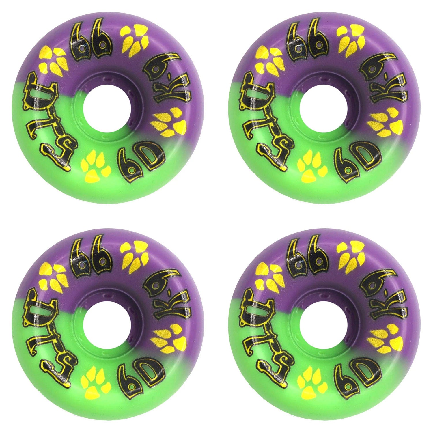 Dogtown Skateboard Wheels 60mm K-9 80's 99A Purple/Neon Green Old School