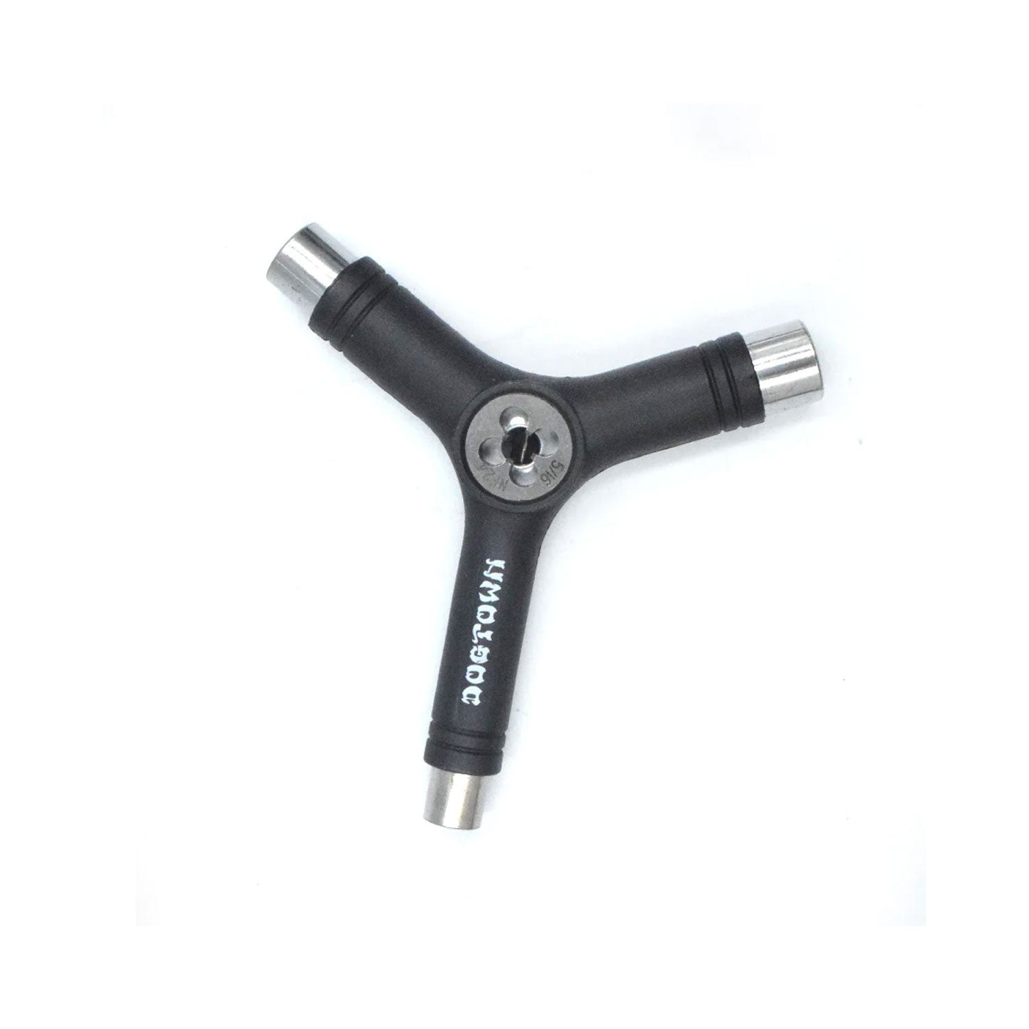 The classic skate tool from Dogtown includes everything you need to tune your board including an axle rethreader. The Y design is comfortable and easy to use. Includes a 3/8" socket for mounting hardware, 1/2" for axle nuts, and 9/16" for kingpin nuts. Also includes the push out Phillips/Allen tool. Completed with an axle rethreader.
