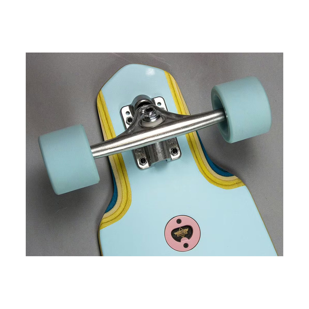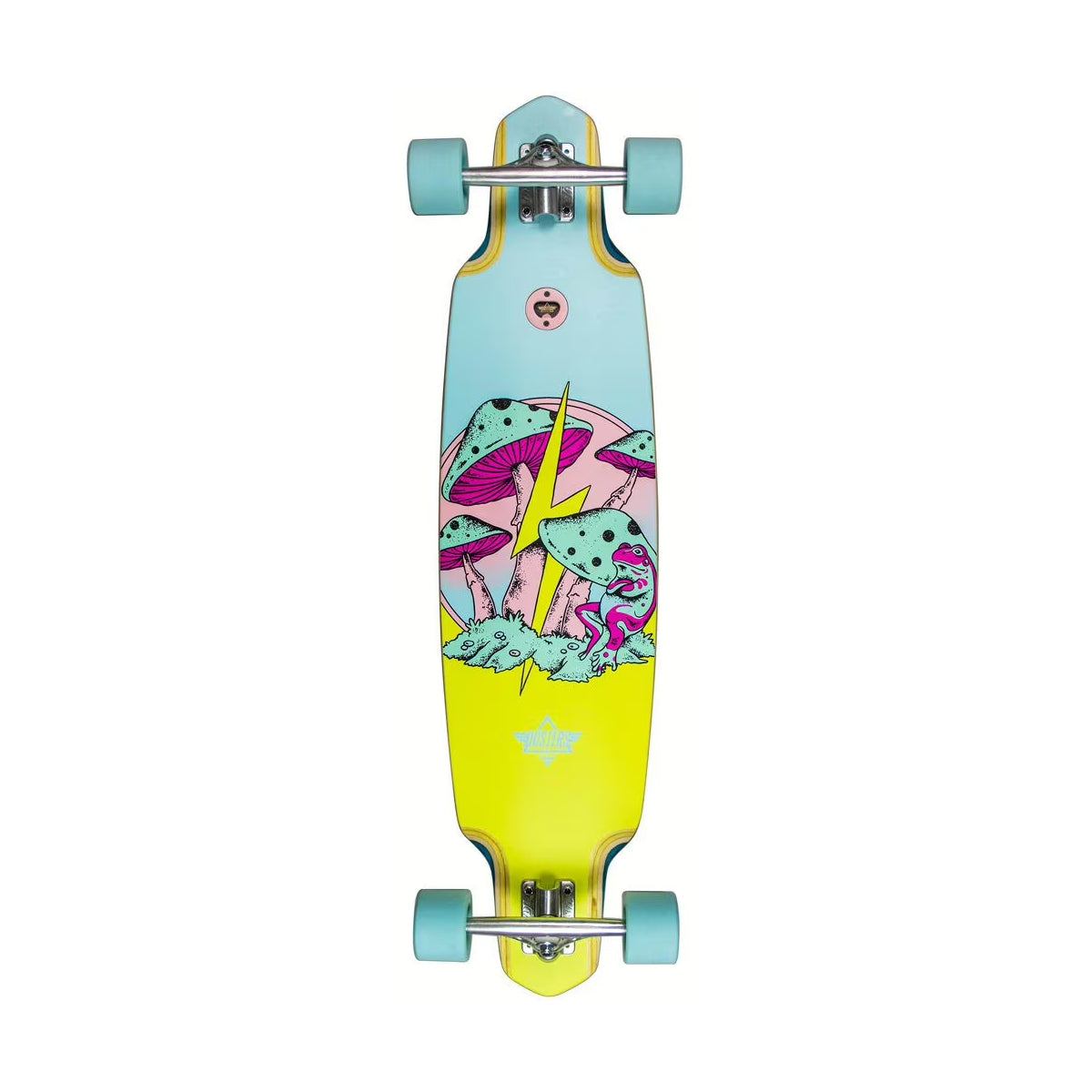 The Dusters Fungi 38" Longboard Skateboard is a symmetrical top-mounted board, so you can ride it in both directions. Great for Freeride and Downhill longboarding.