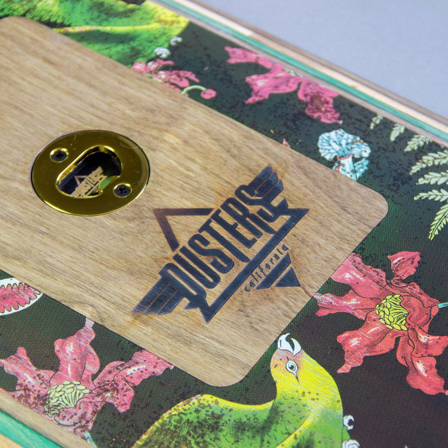 Features: Vivid inks with custom top print. Clear wheels & drop through shape. Directional shape. Slant 180MM reverse kingpin trucks. Dusters Abec 7 bearings. 71mm x 52mm 78A wheels.