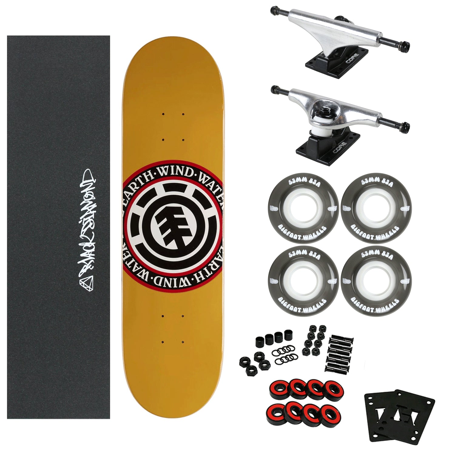 This skateboard features soft 83A wheels for an extra smooth ride. Includes the Element Seal Mustard Deck, Core trucks, Bigfoot 53mm Black 83A Wheels, Amp Speed Bearings, 1" Hardware, and Black Diamond Griptape. Arrives un-assembled which allows for customization and a feeling of accomplishment. Skaters love building their boards! Easy to assemble!