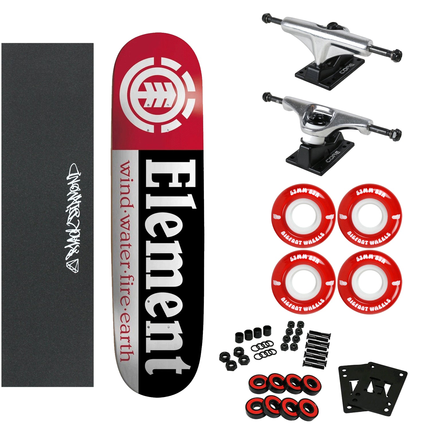 This skateboard features soft 83A wheels for an extra smooth ride. Includes the Element Section Deck, Core trucks, Bigfoot 53mm Red 83A Wheels, Amp Speed Bearings, 1" Hardware, and Black Diamond Griptape. Arrives un-assembled which allows for customization and a feeling of accomplishment. Skaters love building their boards! Easy to assemble!