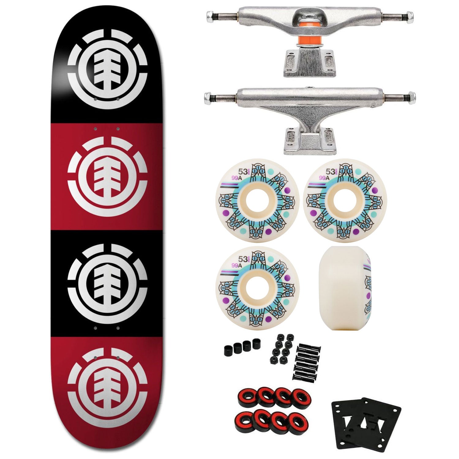 This is a premium skateboard complete parts kit in which every piece is professional grade quality. This kit includes an Element deck, Independent Trucks, Triclops Wheels, Amp 5 Bearings, Black Diamond Griptape, 1" Hardware, and Risers.