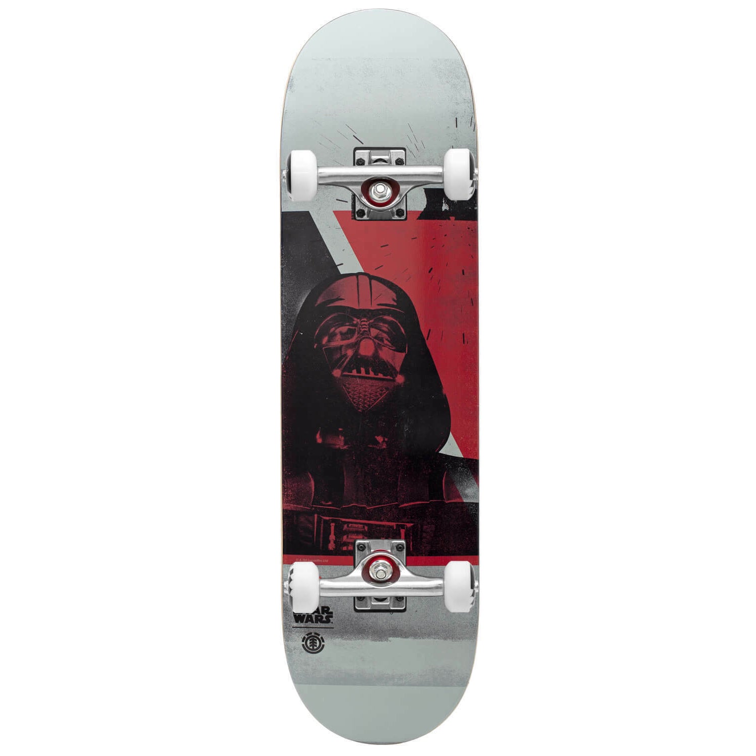 Element is back at it again with the latest Star Wars capsule. This officially licensed complete skateboard arrives factory assembled and ready to ride. This complete measures 7.75" wide and features the Darth Vader graphic with matching color graphic wheels, heavy duty aluminum Element trucks, precision bearings, griptape, and hardware.