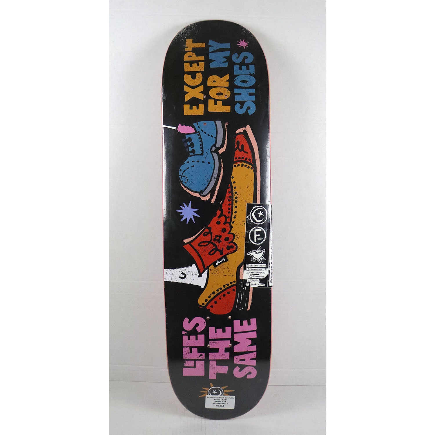 Foundation skateboard decks are constructed with 7-Ply North American Maple. This board measures 8.25" x 31.75" with a 14.5" wheelbase.