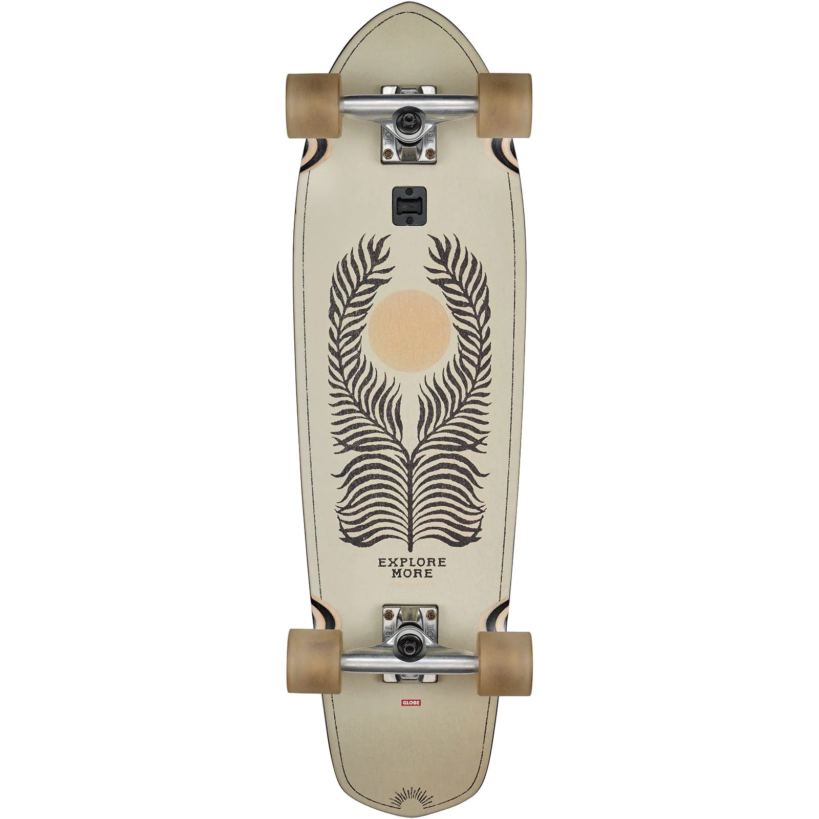 Medium length diamond tail cruiser with built-in bottle opener and soft conical wheels. The Big Blazer in Real Fun Wow features a mellow concave deck constructed from Resin 7 hard rock maple, 6.0” Tensor alloy trucks with grade-8 kingpins and high-rebound urethane bushings. Globe's 62mm 83a high-rebound urethane conical cruiser wheels are sticky enough to hold turns and slide while allowing for a smooth and stable ride.