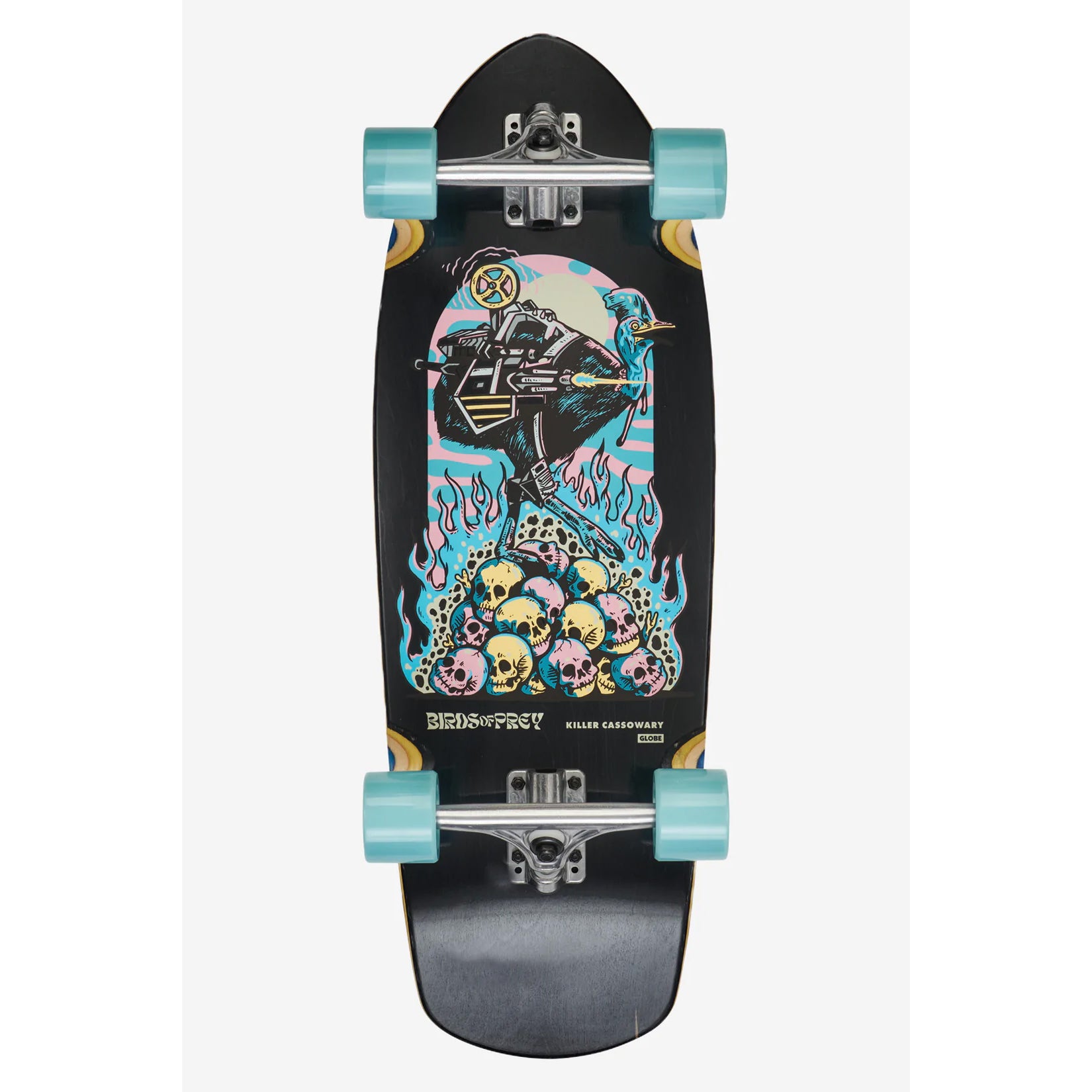 Wide, steady platform carving board on tight-turning reverse kingpin trucks. The Stubby 30" in Killer Cassowary features Mellow concave with kicktail and is constructed from Resin-7 hard rock maple.