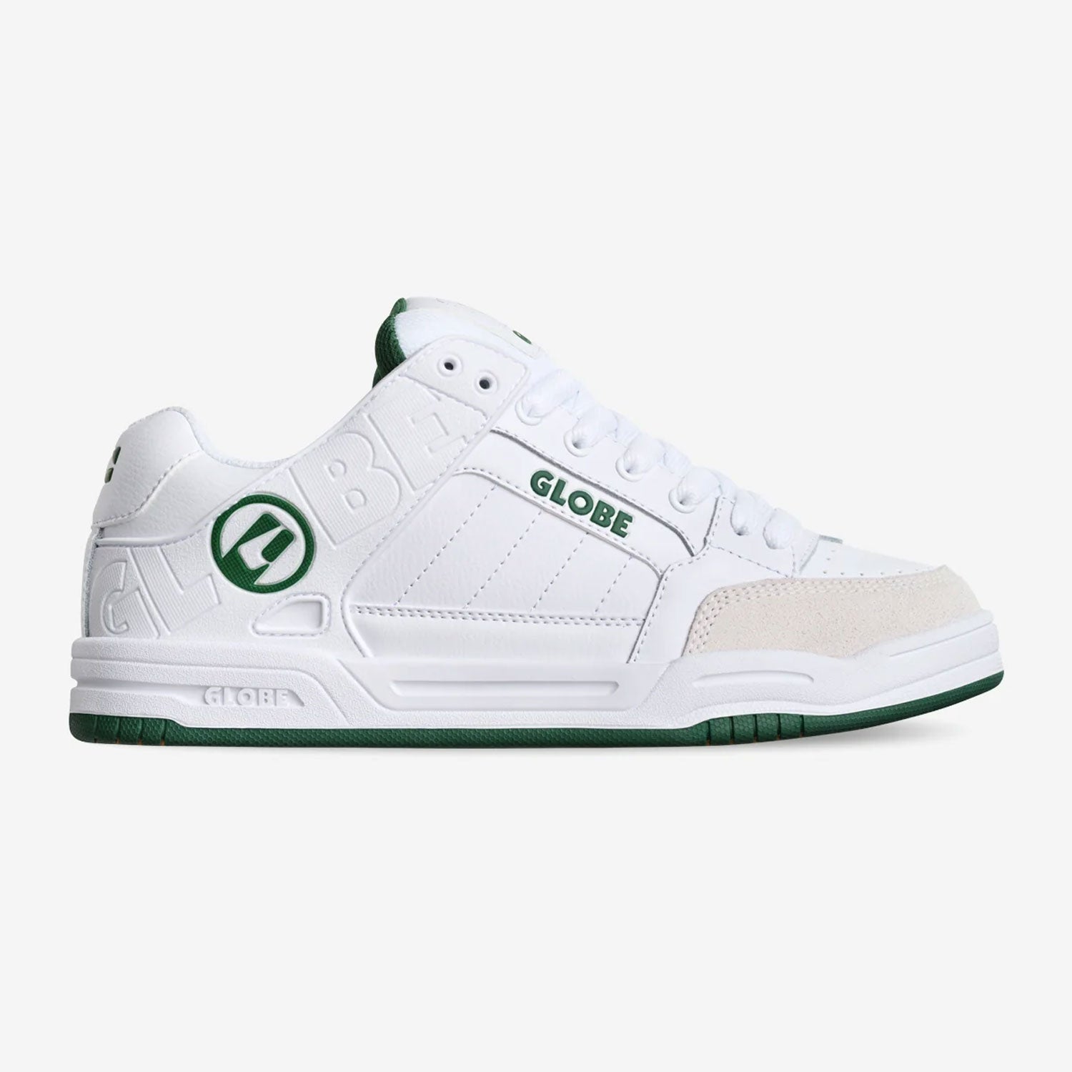 Globe's classic heritage skate silhouette featuring a molded TPR outside collar for support and durability, and S-Trac sole pattern for enhanced grip and board feel. Action Nubuck/Synthetic Nubuck/Suede. Globe's Strobo cup sole. Molded TPR Powerstrap + Lower Eye Stray. S-Trac sole pattern.