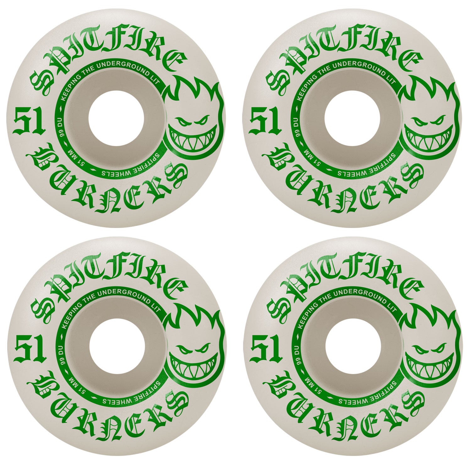 WHEELS: The newly developed burners offer a new tier in Spitfires line. Using a unique new urethane, the burners provide an option for any skater looking for a high-quality wheel that’s great to ride and doesn’t sacrifice performance for the price. Poured in the Bighead shape, 99A durometer hardness. 54mm x 34.5mm.